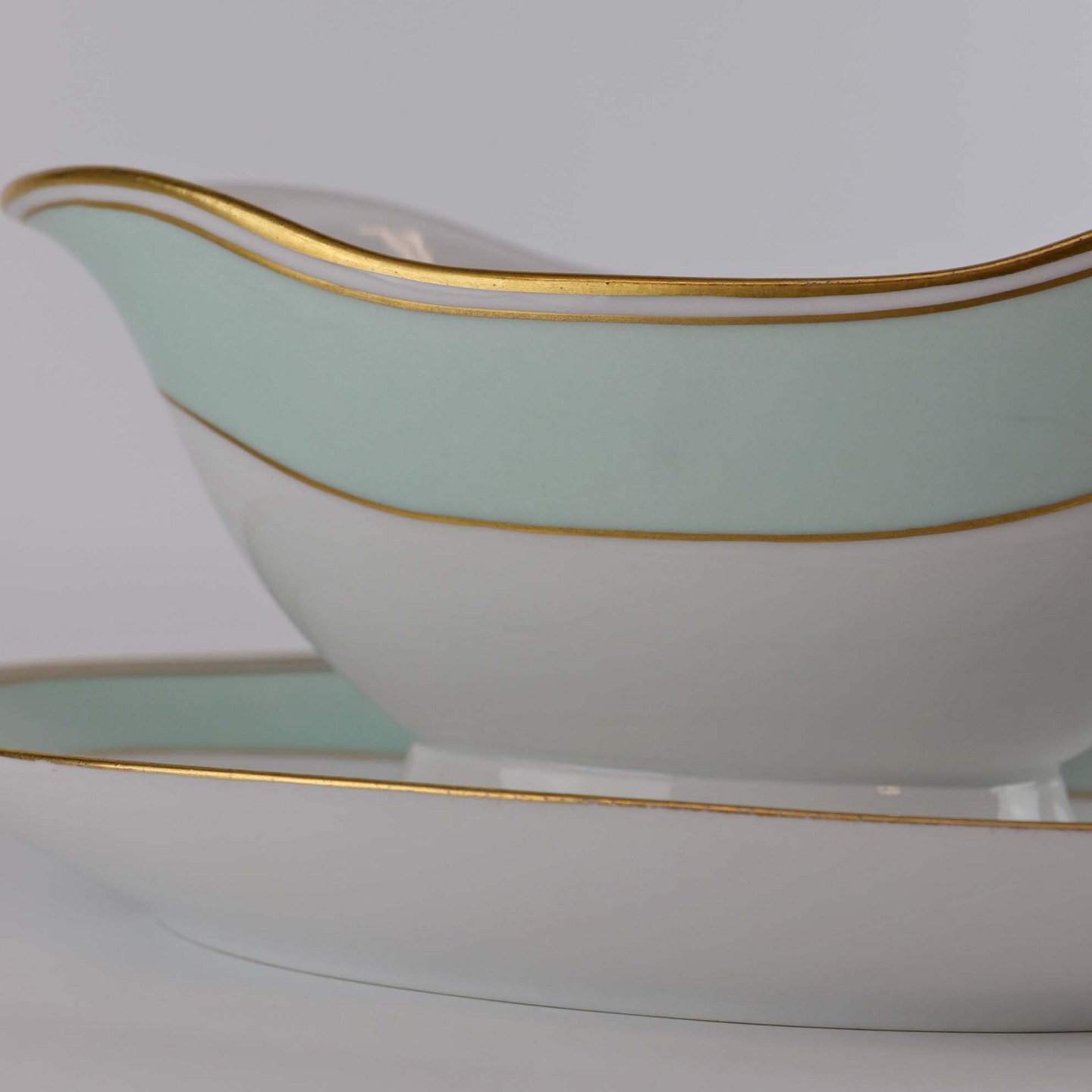 Strauss er af hvidt glaseret porcelæn med et bredt bånd i mintblå, samt enkelte guldlinjer. Lettere brugsspor kan forekomme