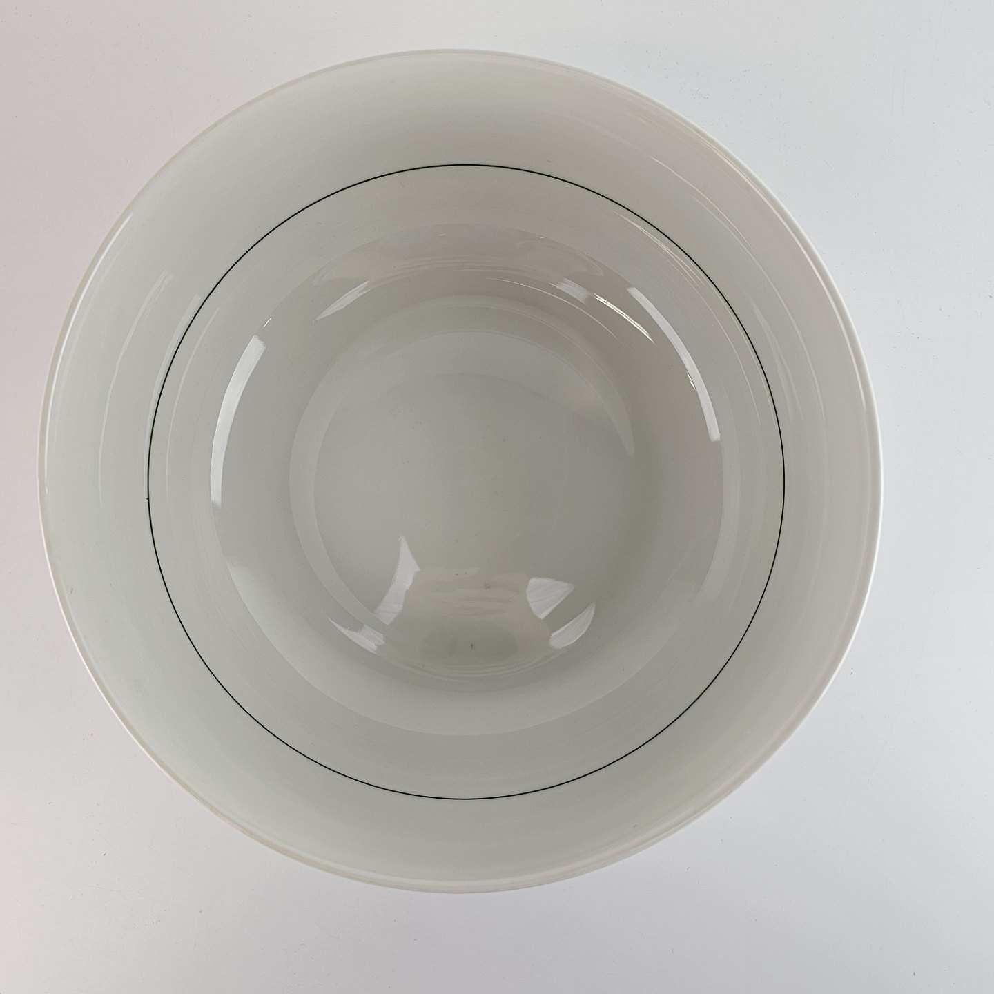 Olympia er hvidt glaseret porcelæn, dekoreret med tynde grønne striber. Lettere brugsspor kan forekomme.