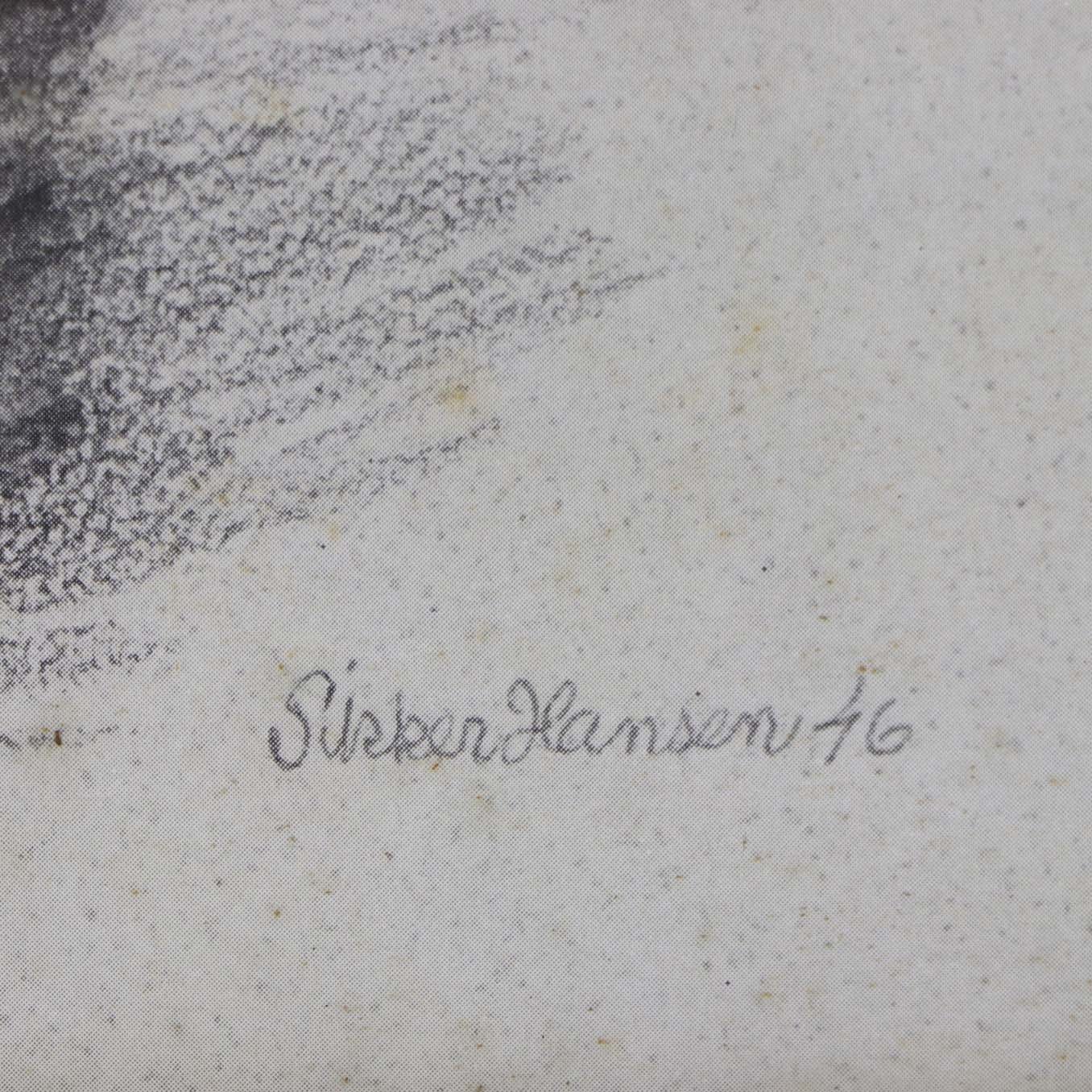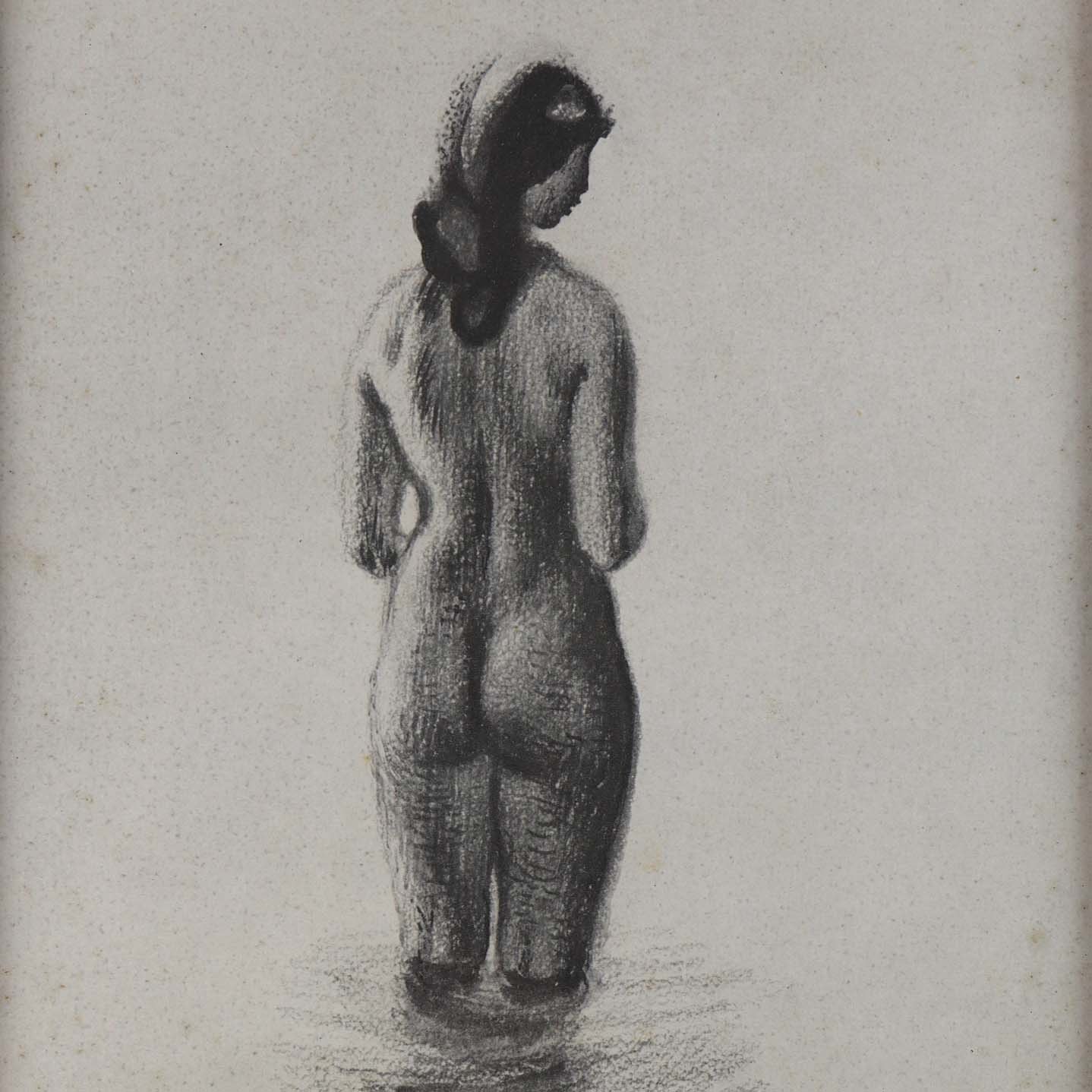 Indrammet tryk i sortmalet træramme med motiv af nøgen kvinde i vandet