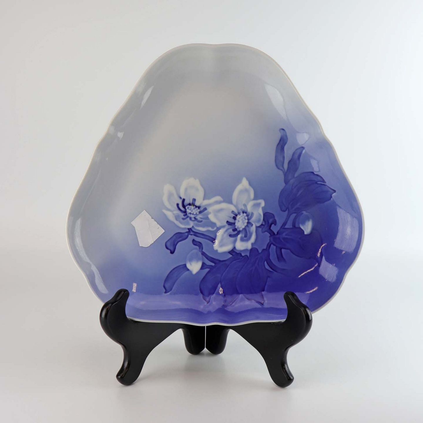 Julerose er hvidt porcelæn med gradueret blå farver, dekoreret med et motiv af en hvid julerose