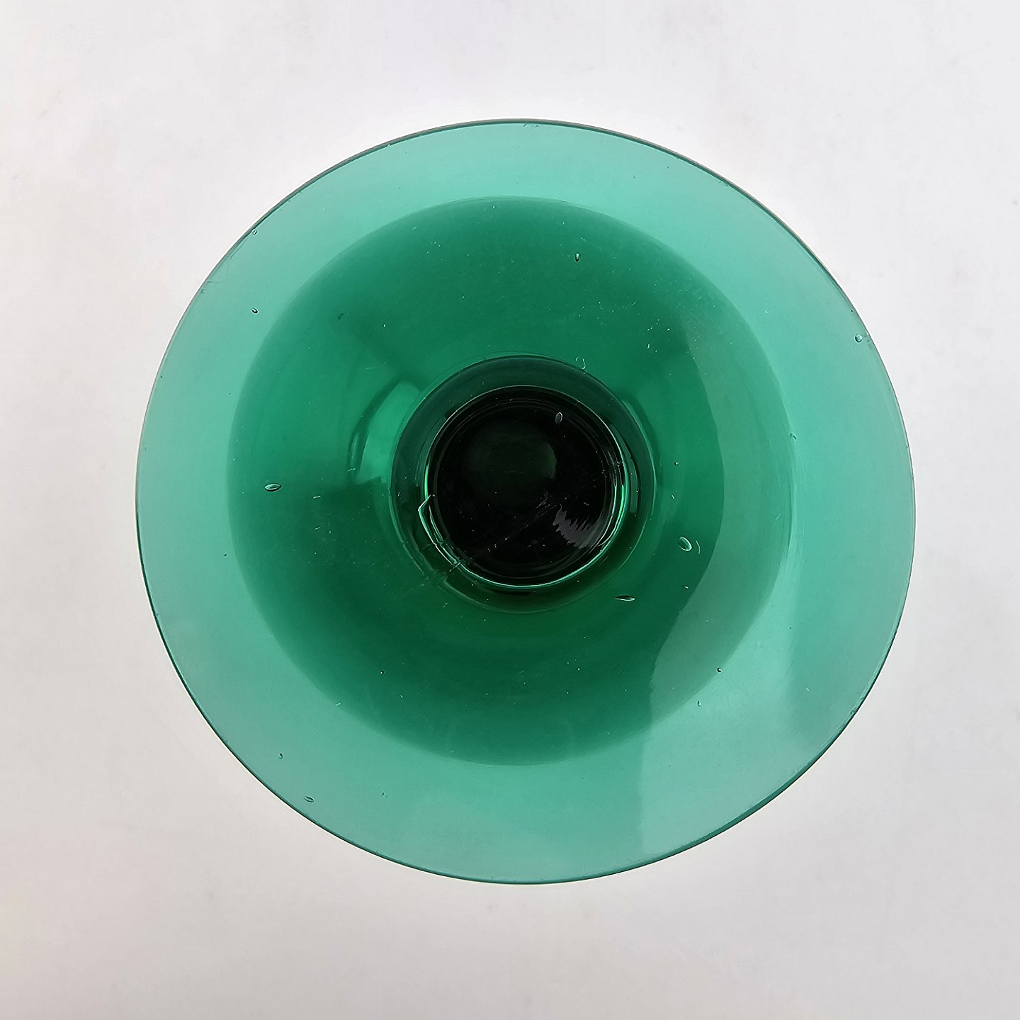 Hvidvinsglas af mundblæst grønt glas, dekoreret med ætsning nr. 5, fra serien Gerda. Produceret fra 1938 til 1950'erne