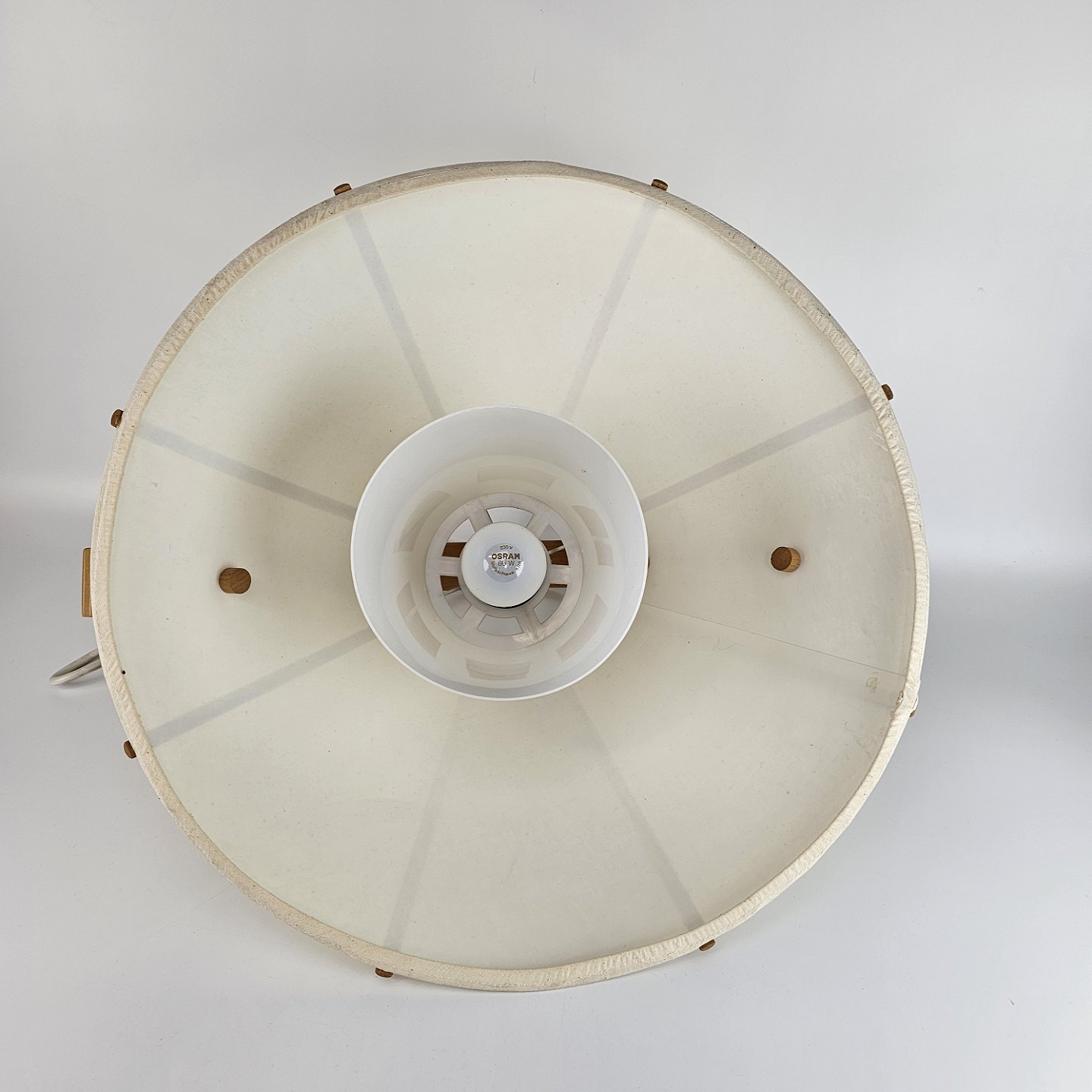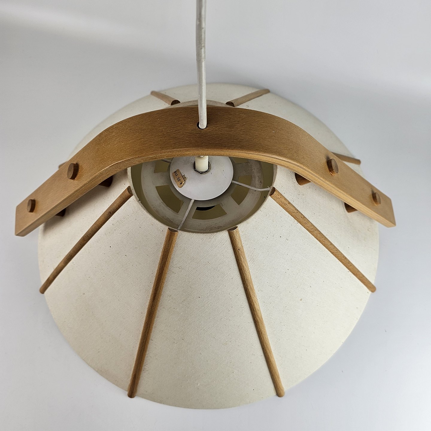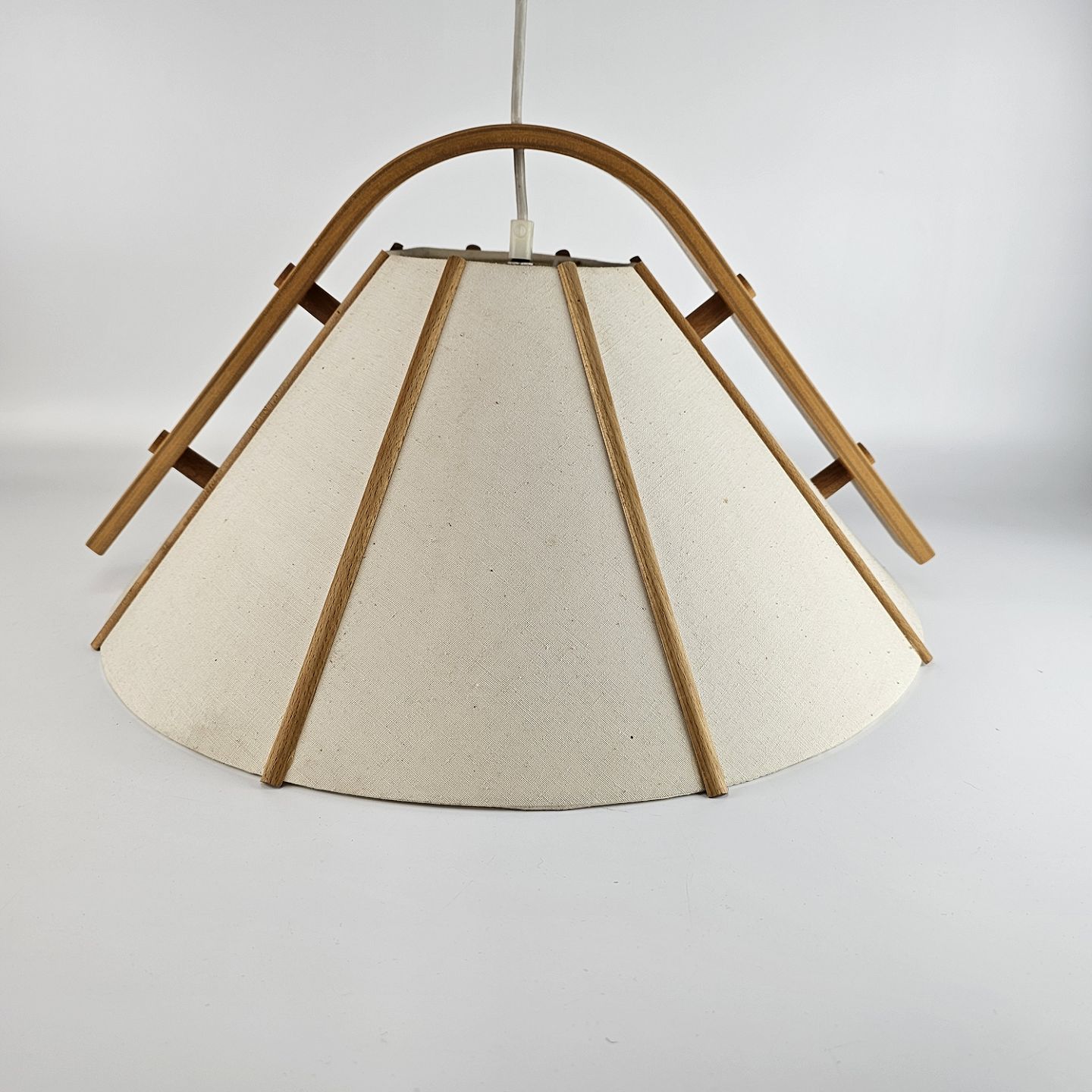 Loftlampe af stof og bøg. Designet i 1970'erne. Model Aneta