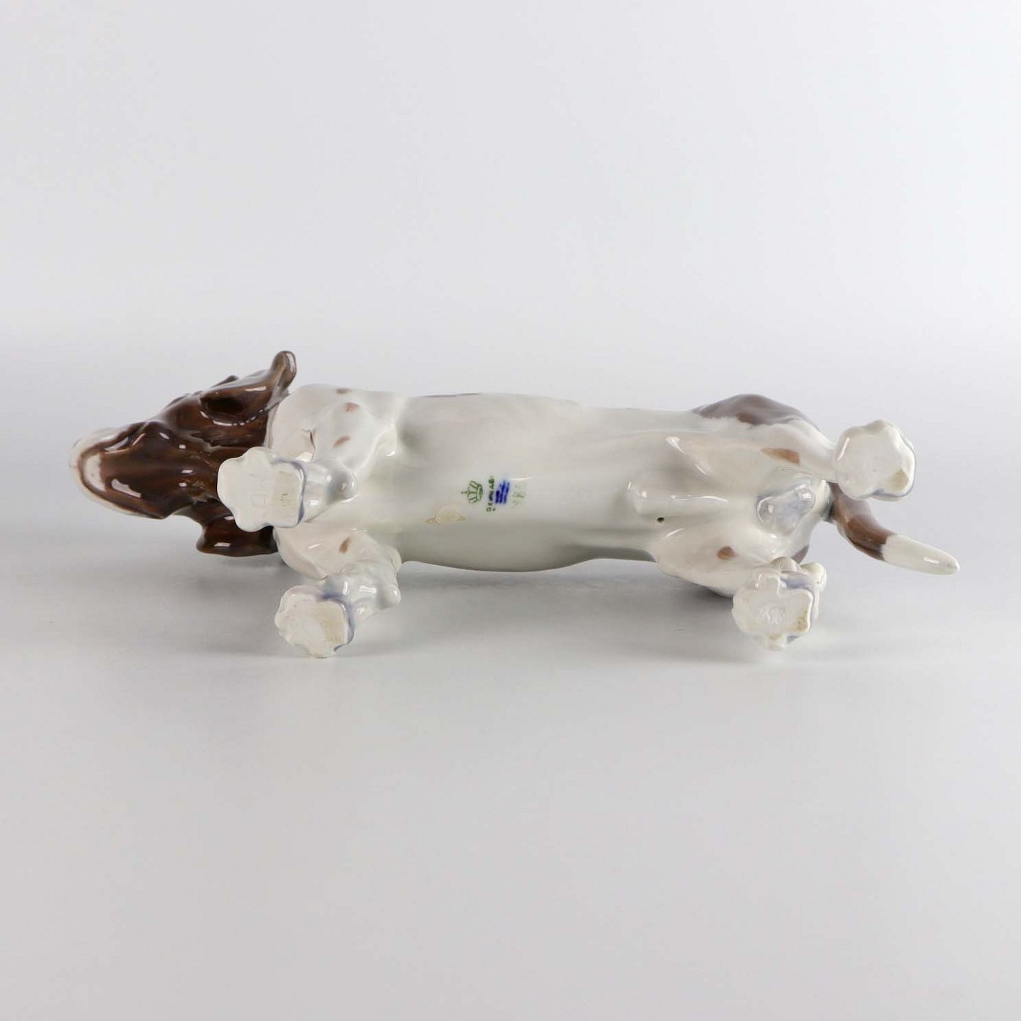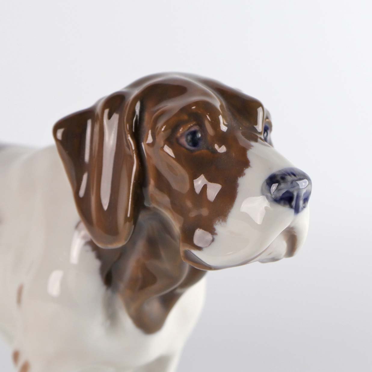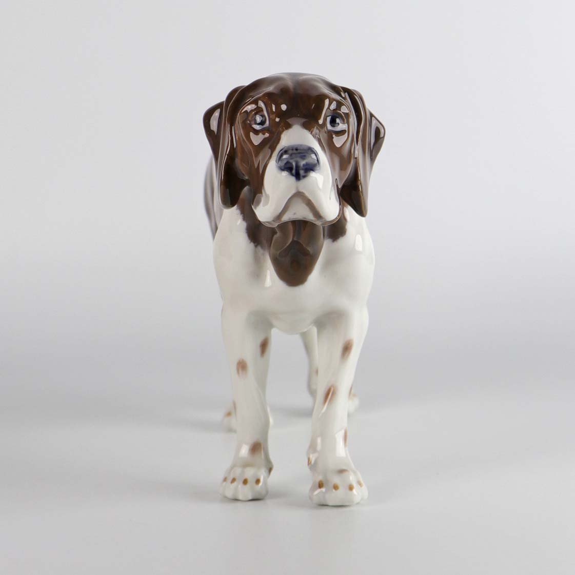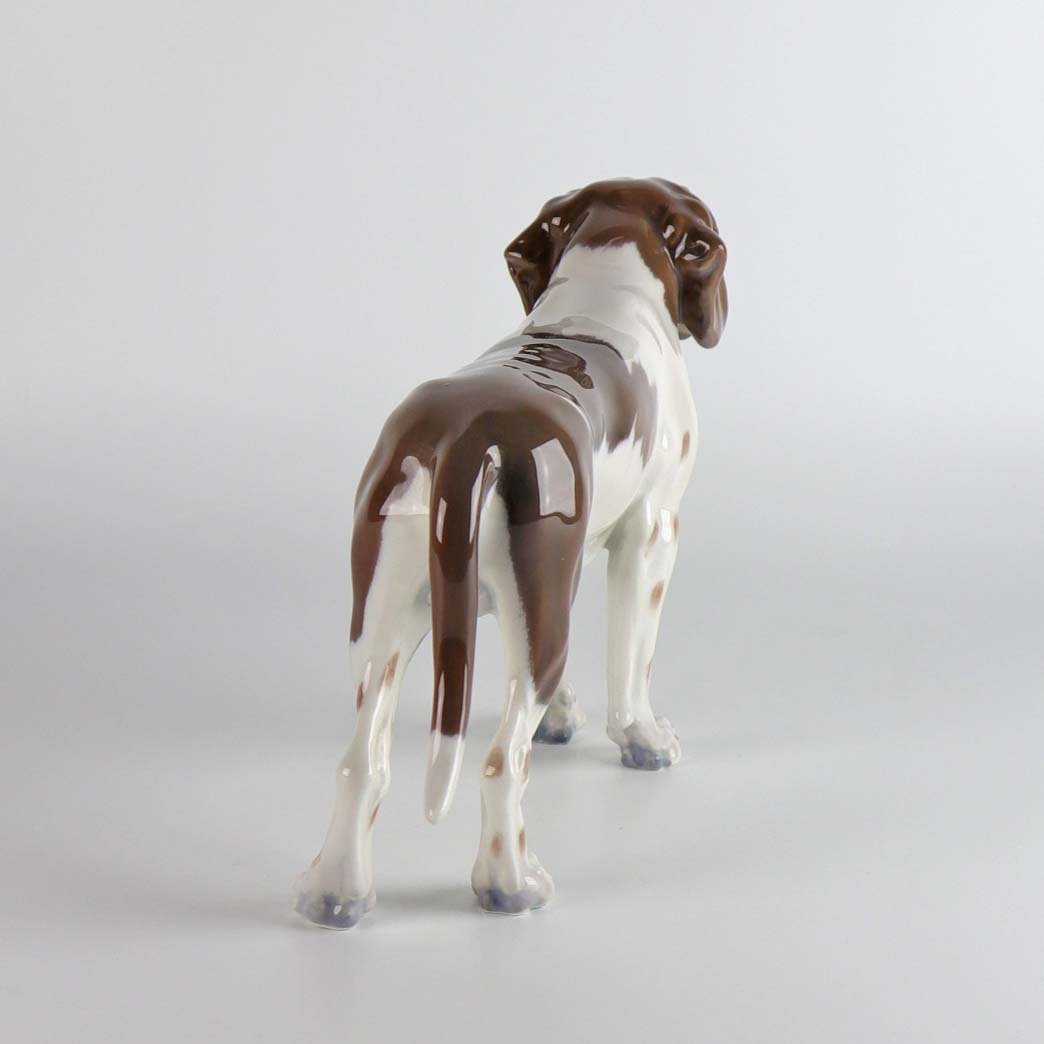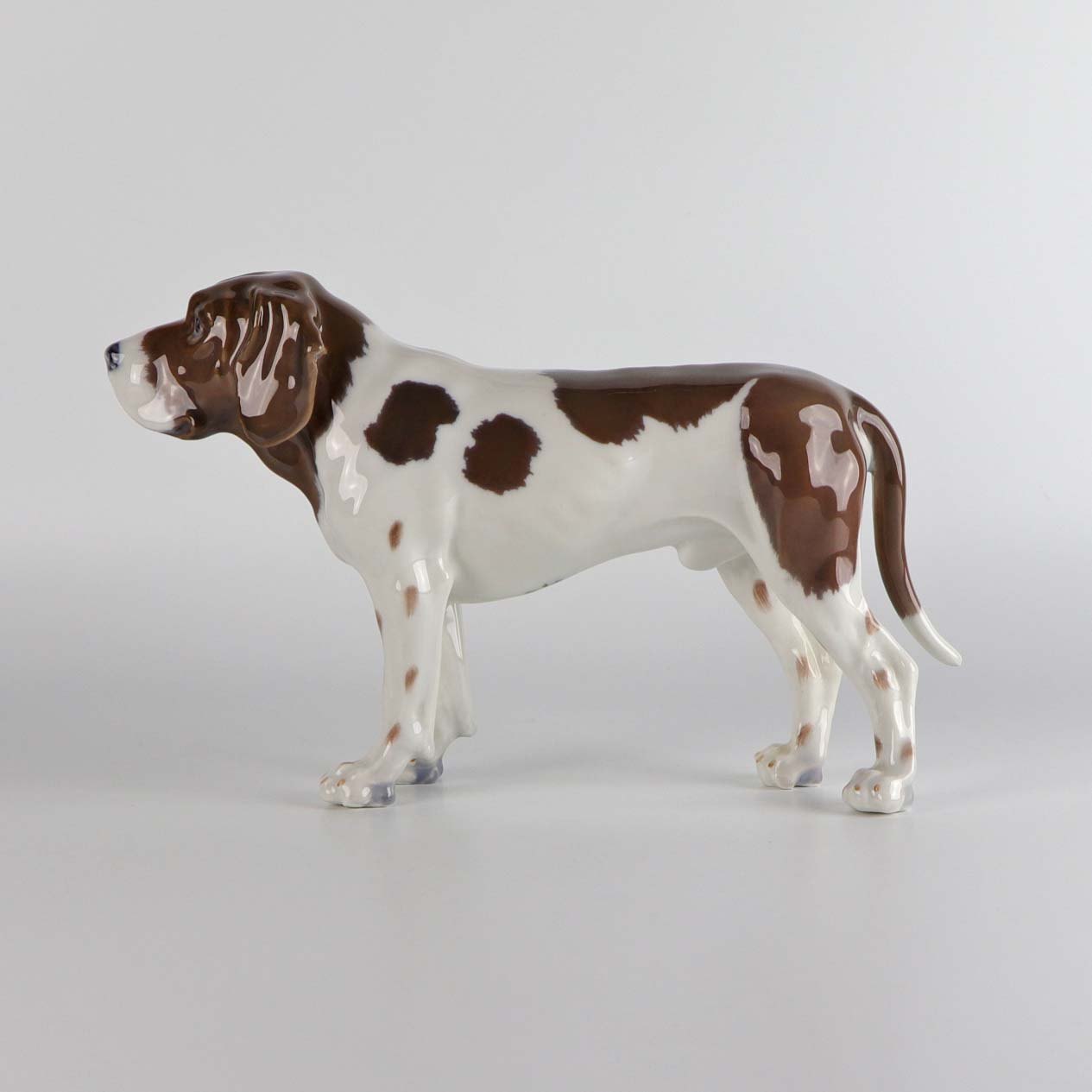 Figur i porcelæn med motiv af stående gammel dansk hønsehund. Nr. 4852