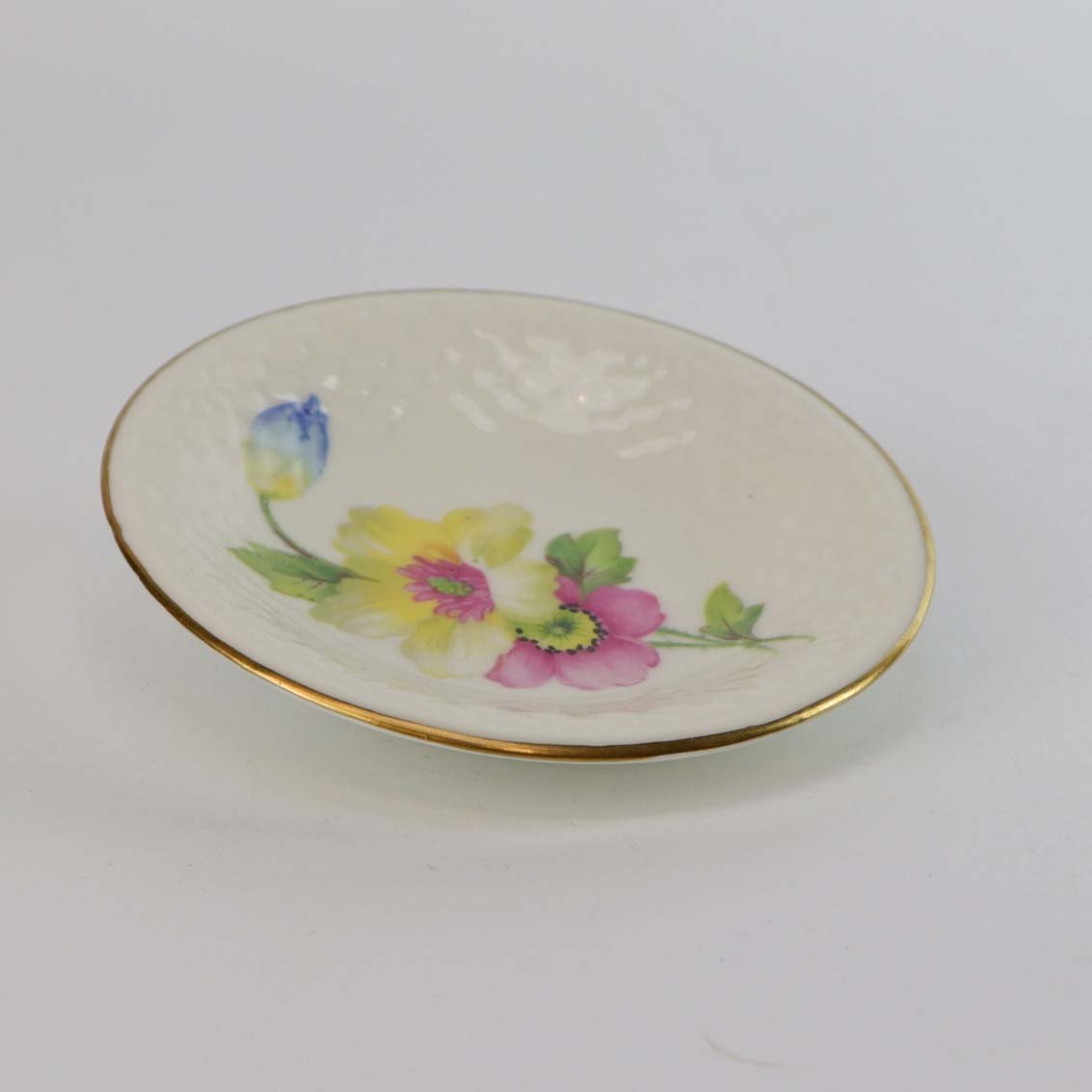 Thor Anemone er af cremefarvet glaseret porcelæn, dekoreret med forskellig farvede anemoner og gylden kant