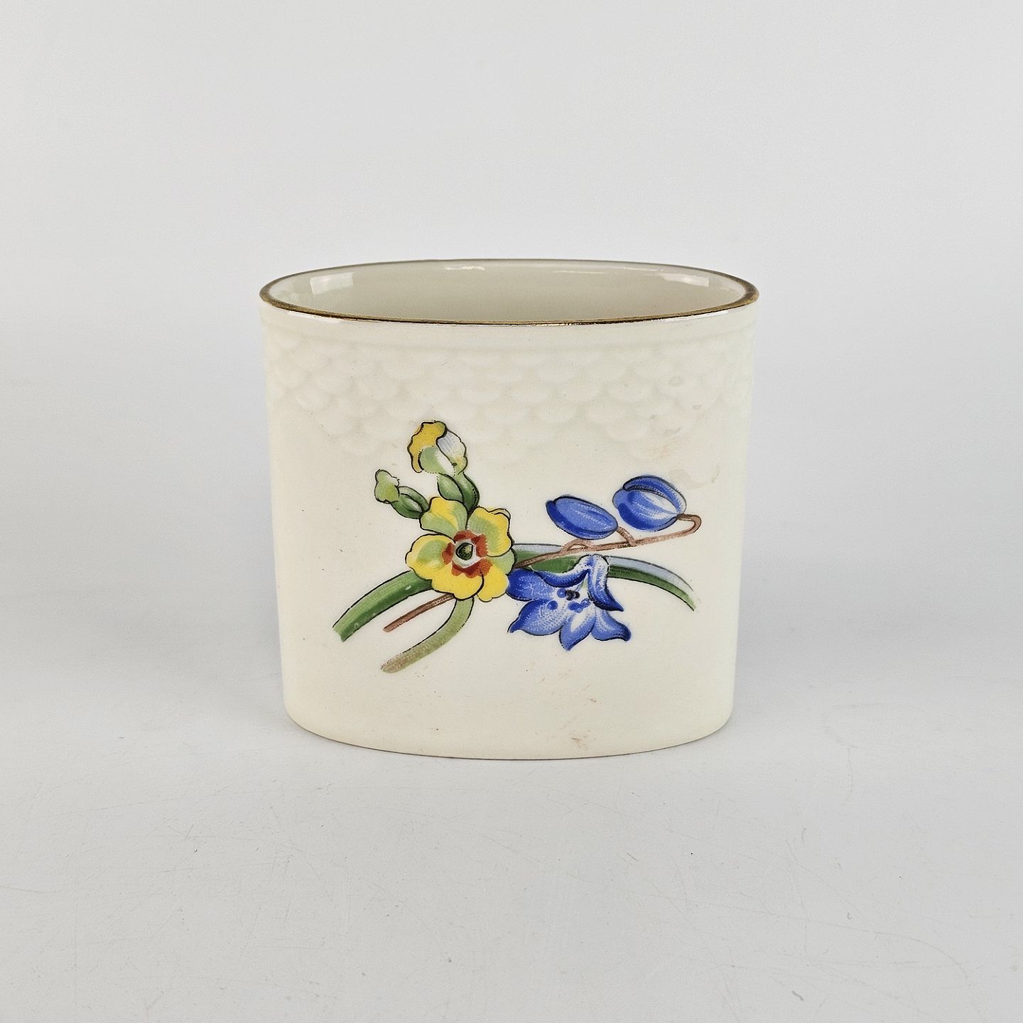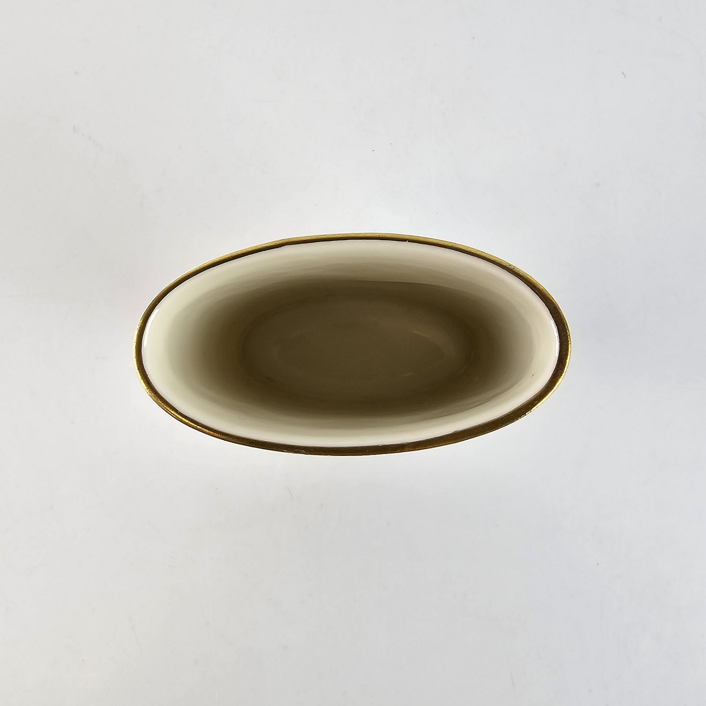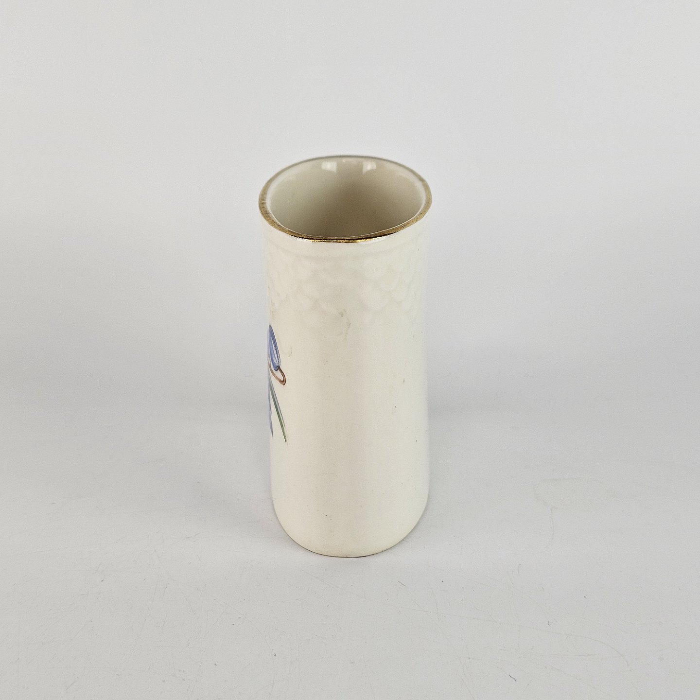Njal er af creme farvet glaseret porcelæn, præget med skæl lignende mønster. Stellet er dekoreret med gul og blå blomster samt mønster af guld i kanten. Lettere brugsspor kan forekomme