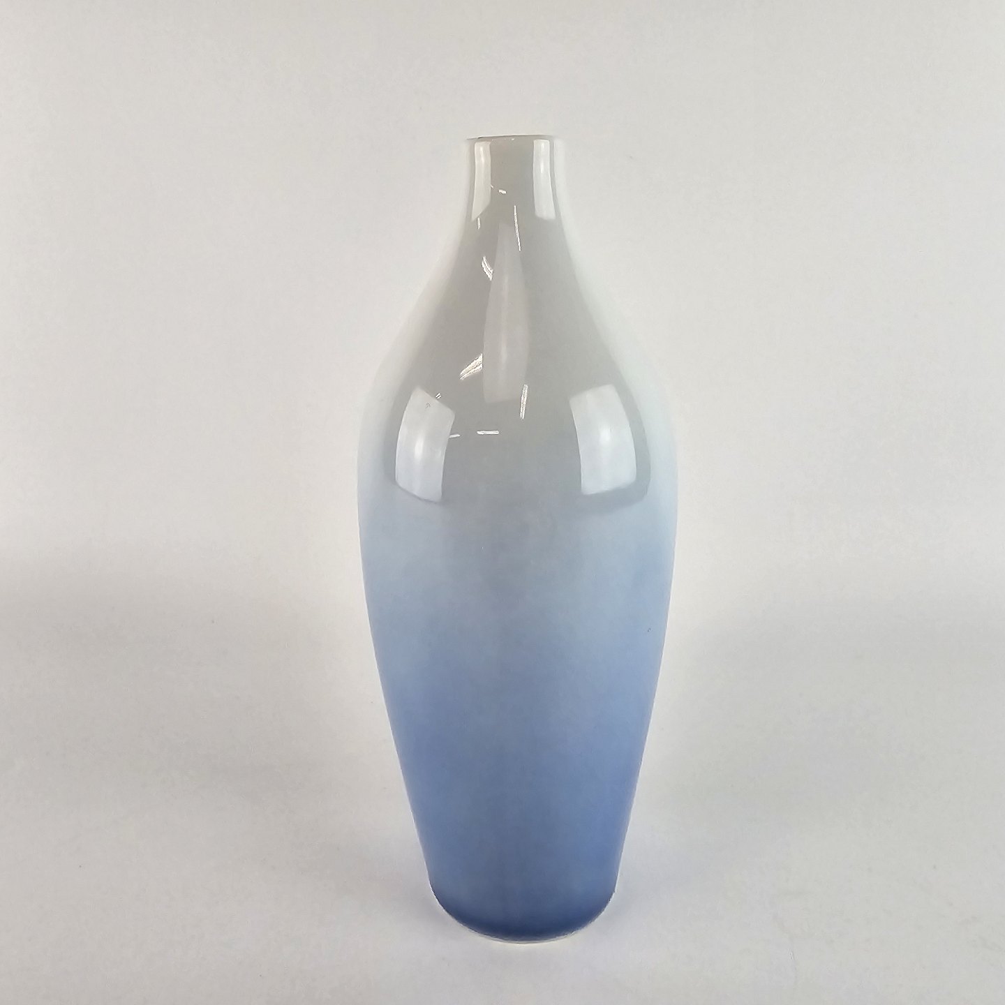 Stellet er fra 1970 og udformet i glat porcelæn med gradueret blålig tone samt motiv af en liljekonval.