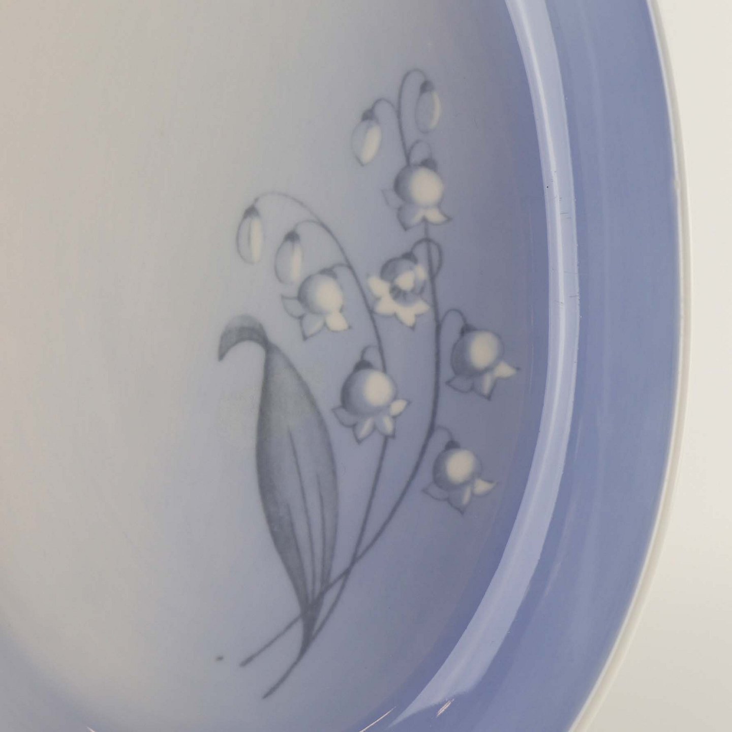 Stellet er fra 1970 og udformet i glat porcelæn med gradueret blålig tone samt motiv af en liljekonval.