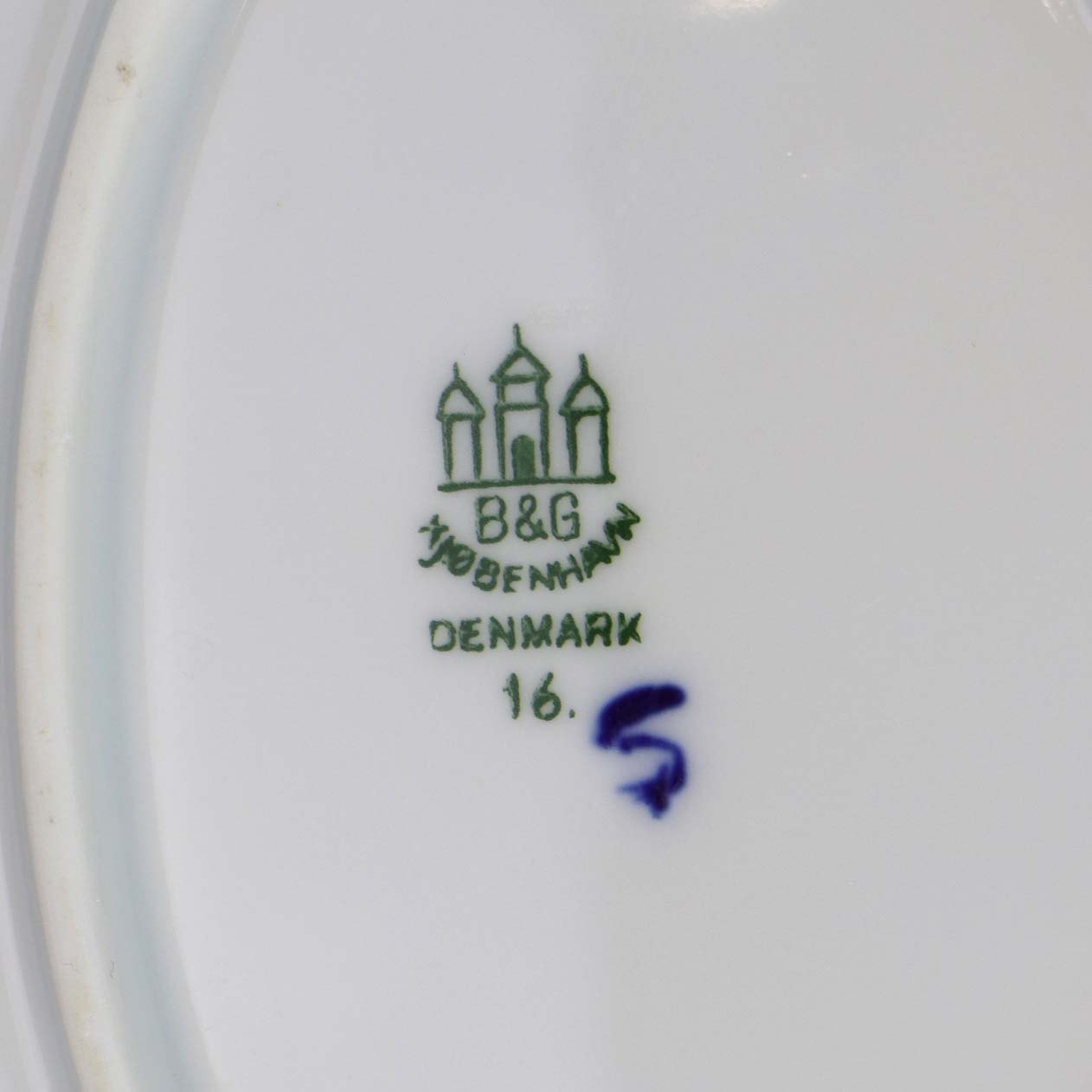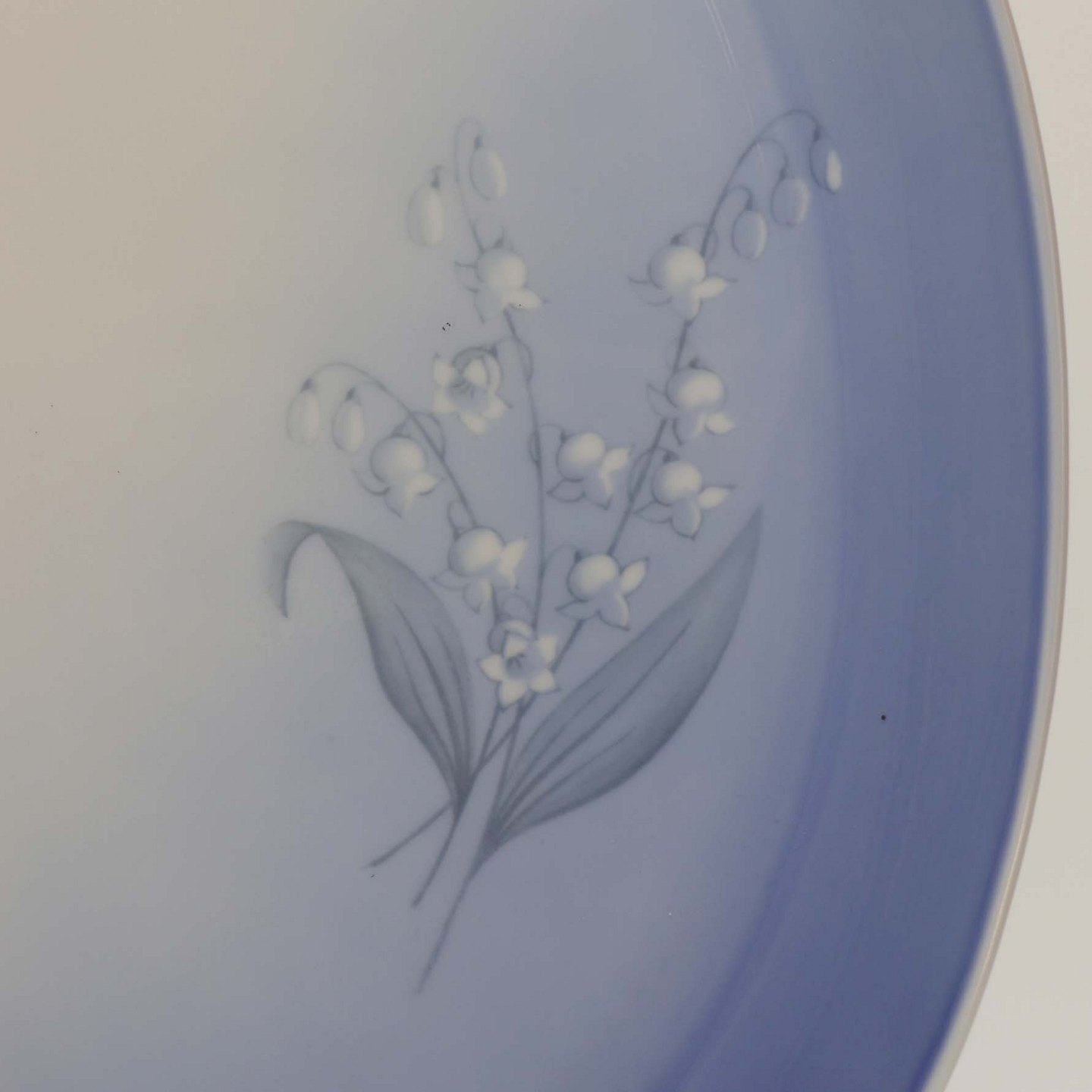 Stellet er fra 1970 og udformet i glat porcelæn med gradueret blålig tone samt motiv af en liljekonval.