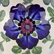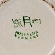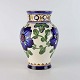 Vase i fajance med teksten Jul 1920 og motiv af en blå blomst på lys baggrund. Nr. 1195/1072
