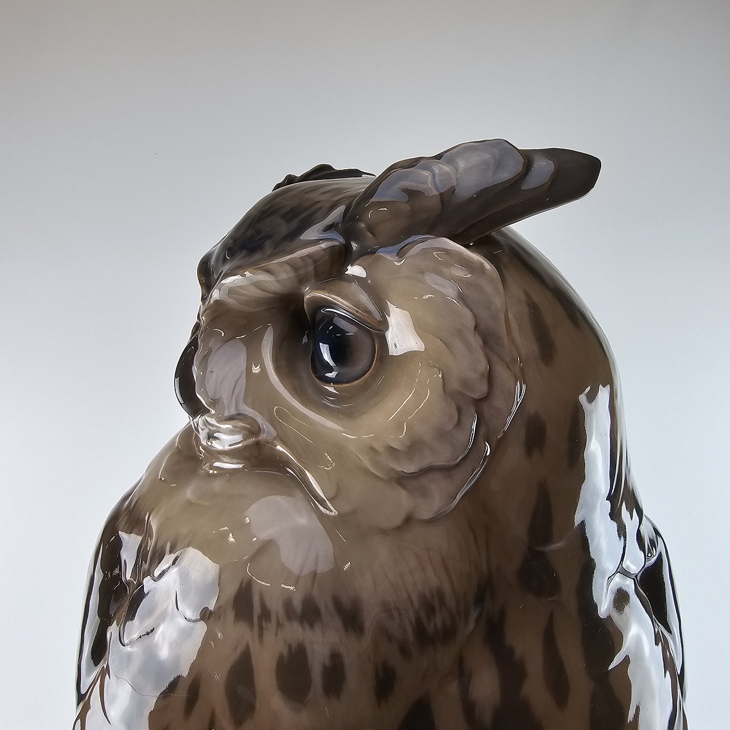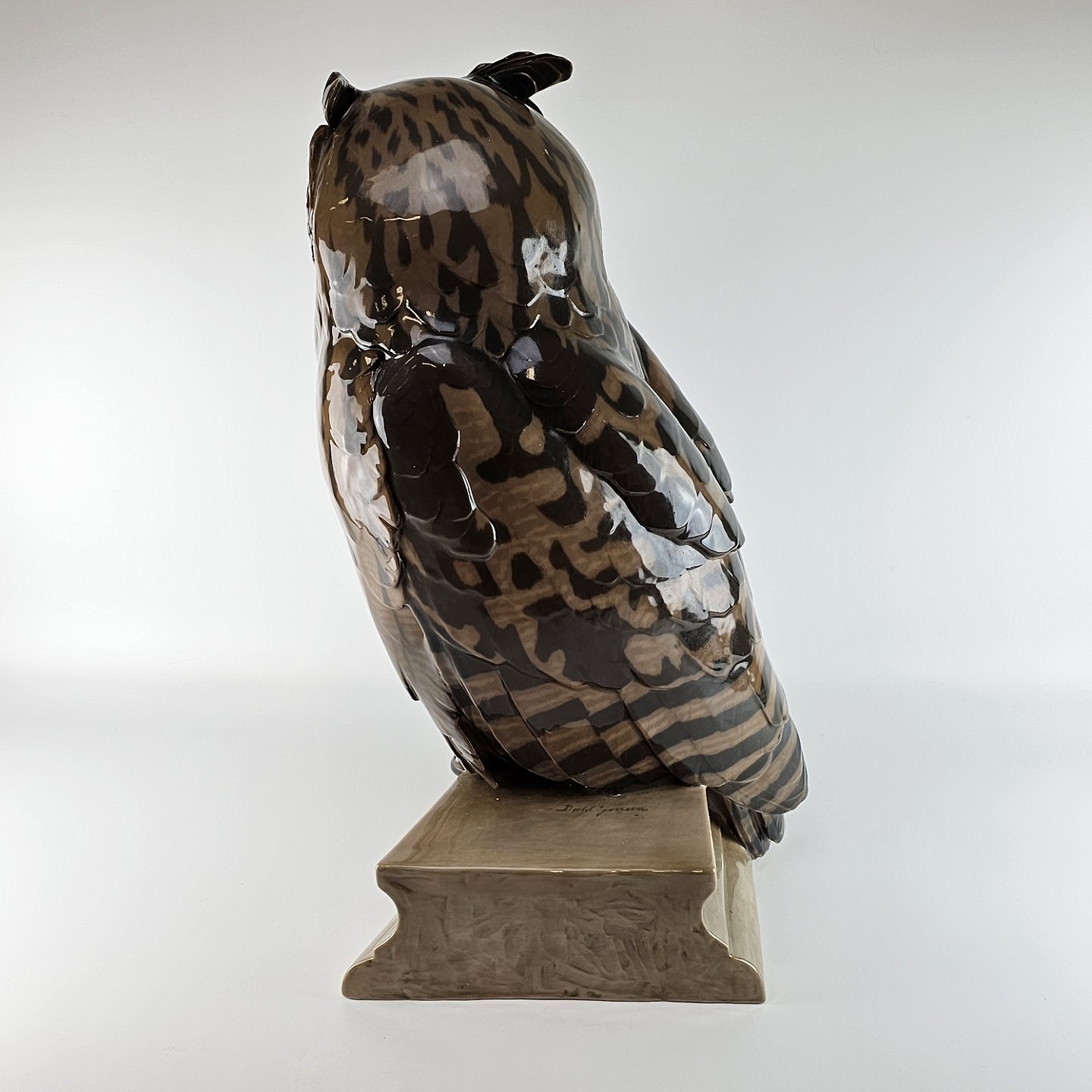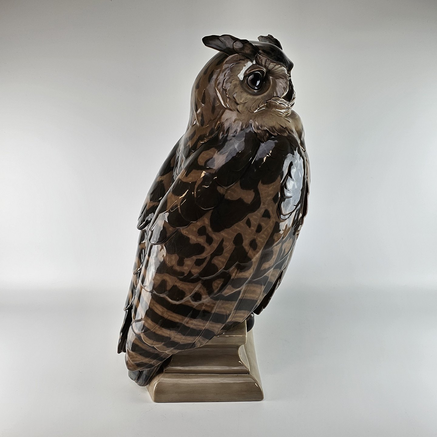 Stor figur i porcelæn med motiv af en hornugle siddende på et tagudhæng. Nr. 1846