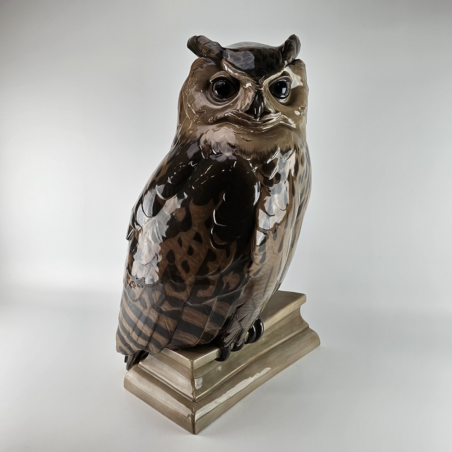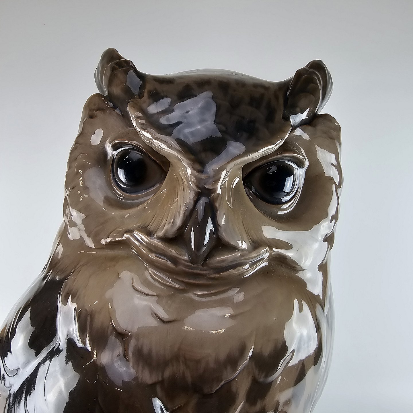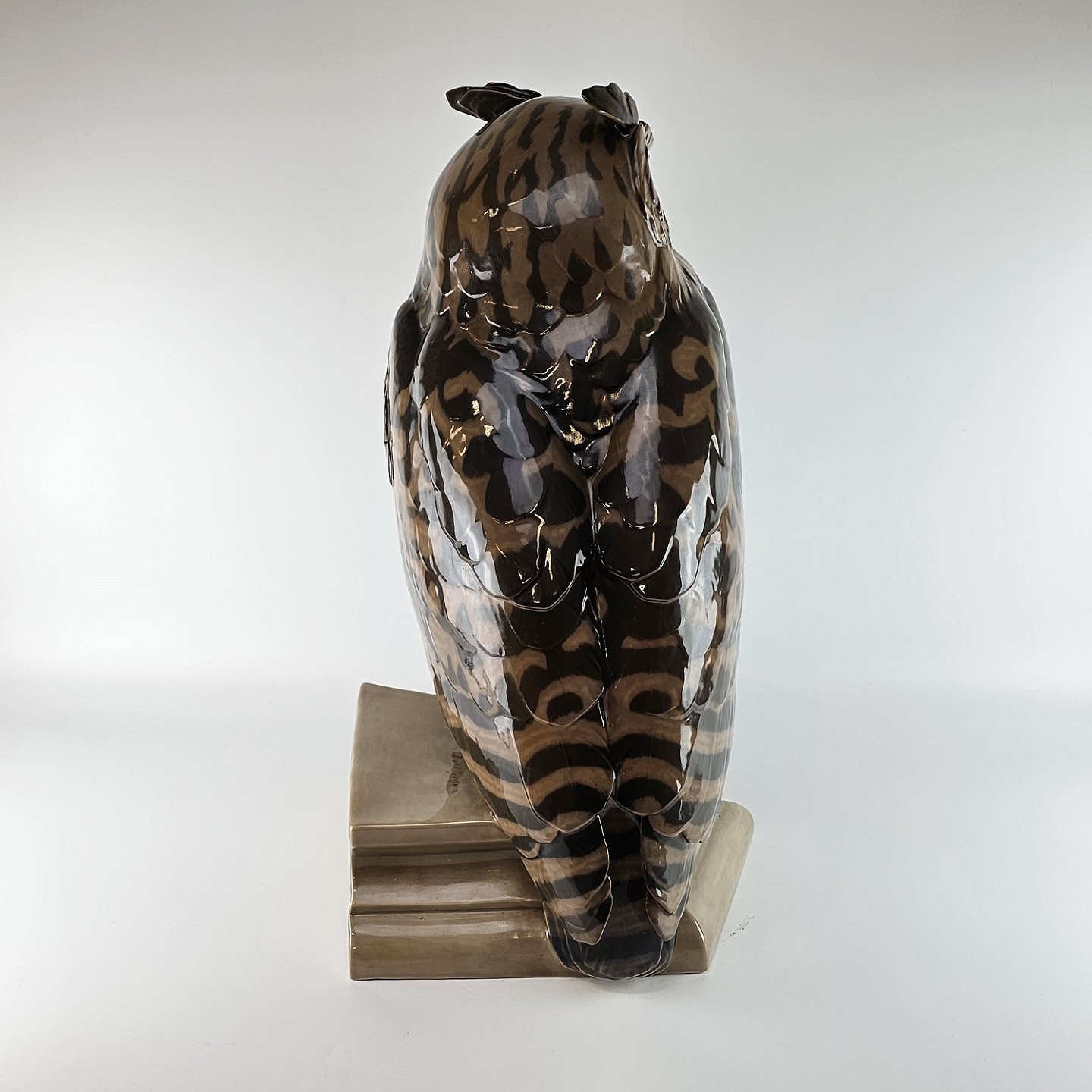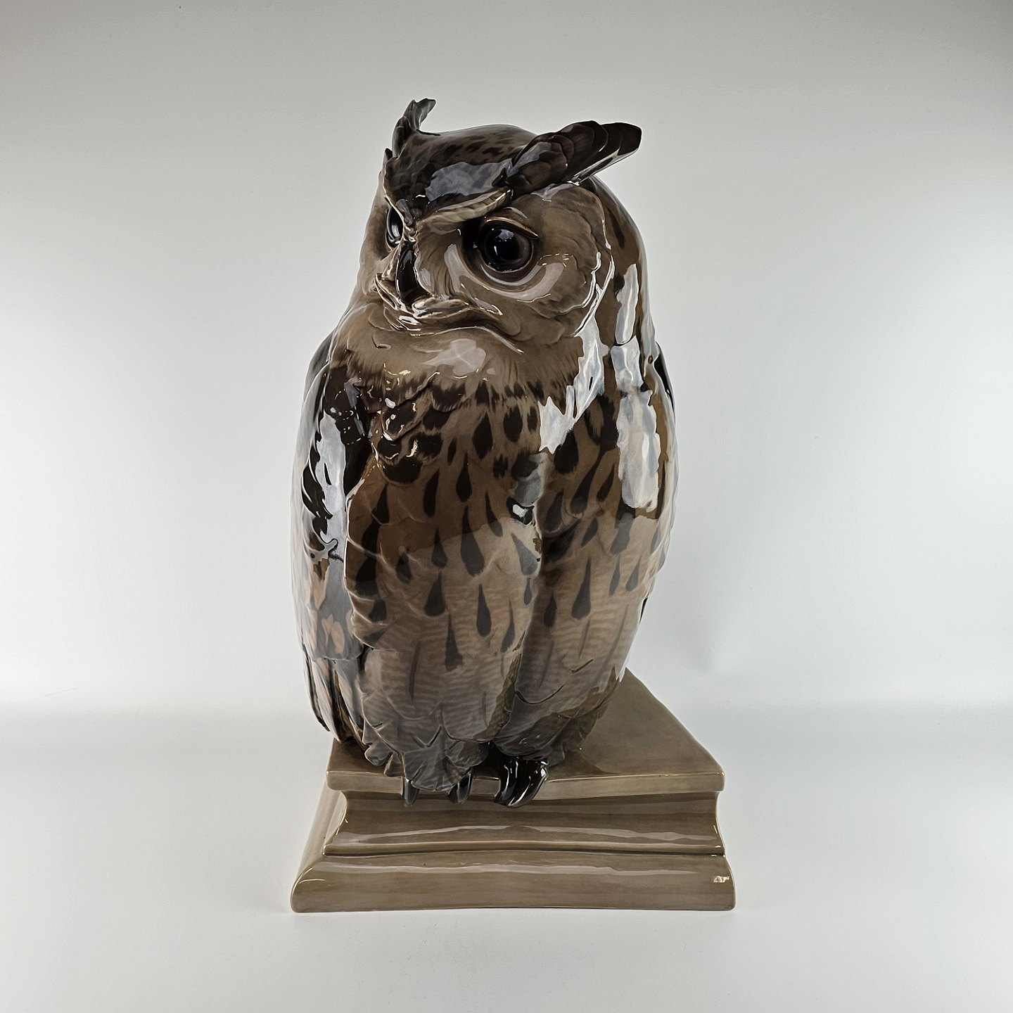 Stor figur i porcelæn med motiv af en hornugle siddende på et tagudhæng. Nr. 1846