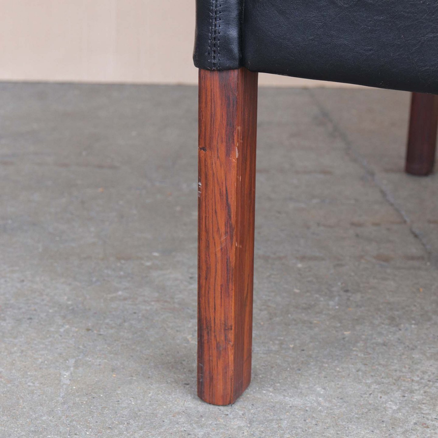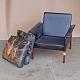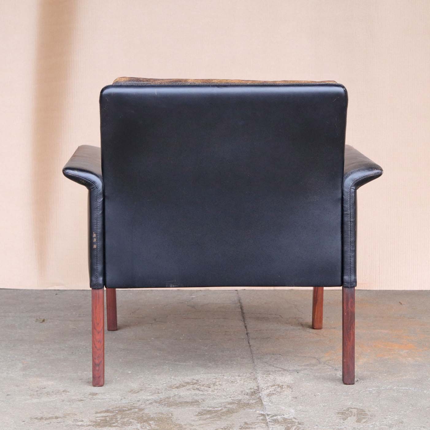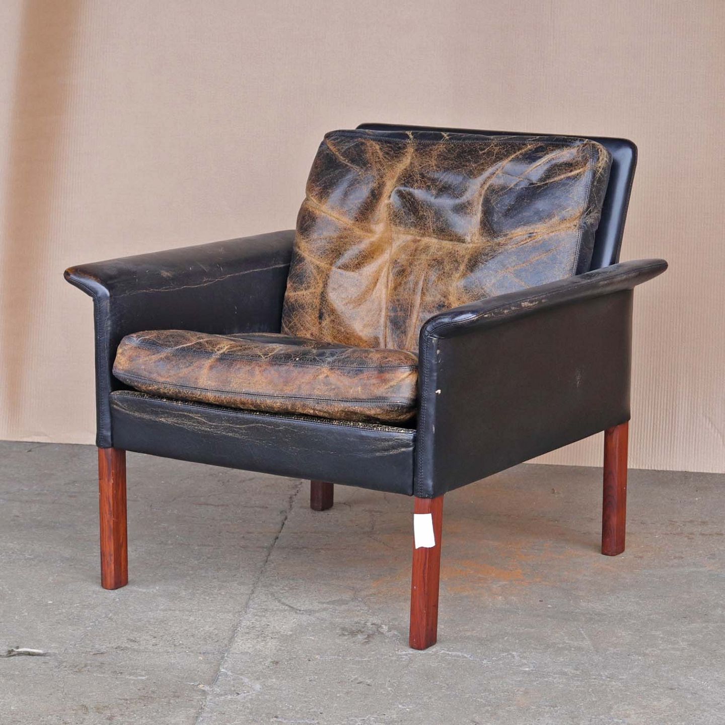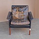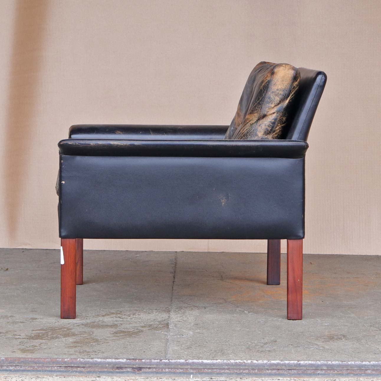 Lænestol med stel i lakeret palisander. Stolen betrukket med sort patineret læder
