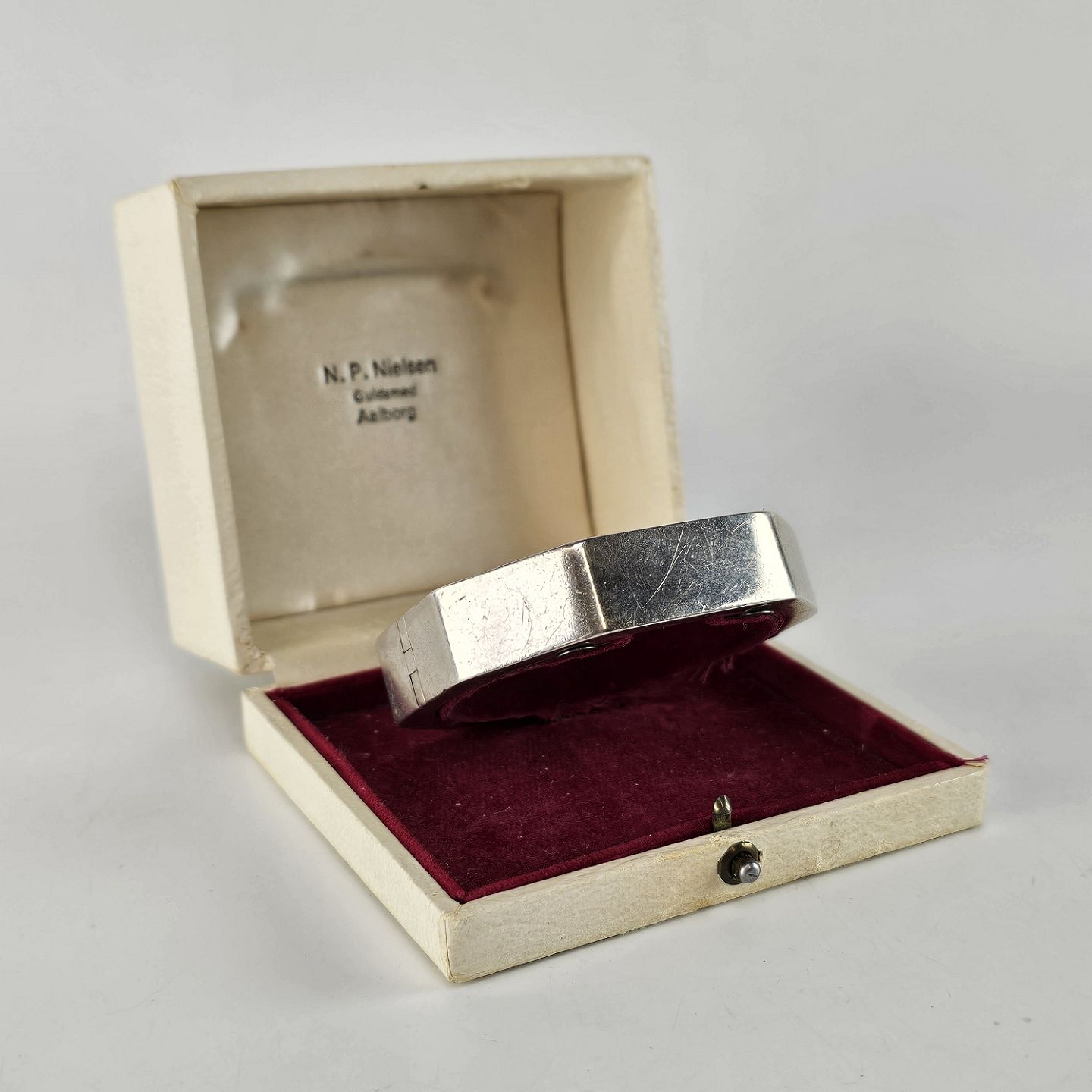 Armring i sterlingsølv med hængselluk, i original kasse.