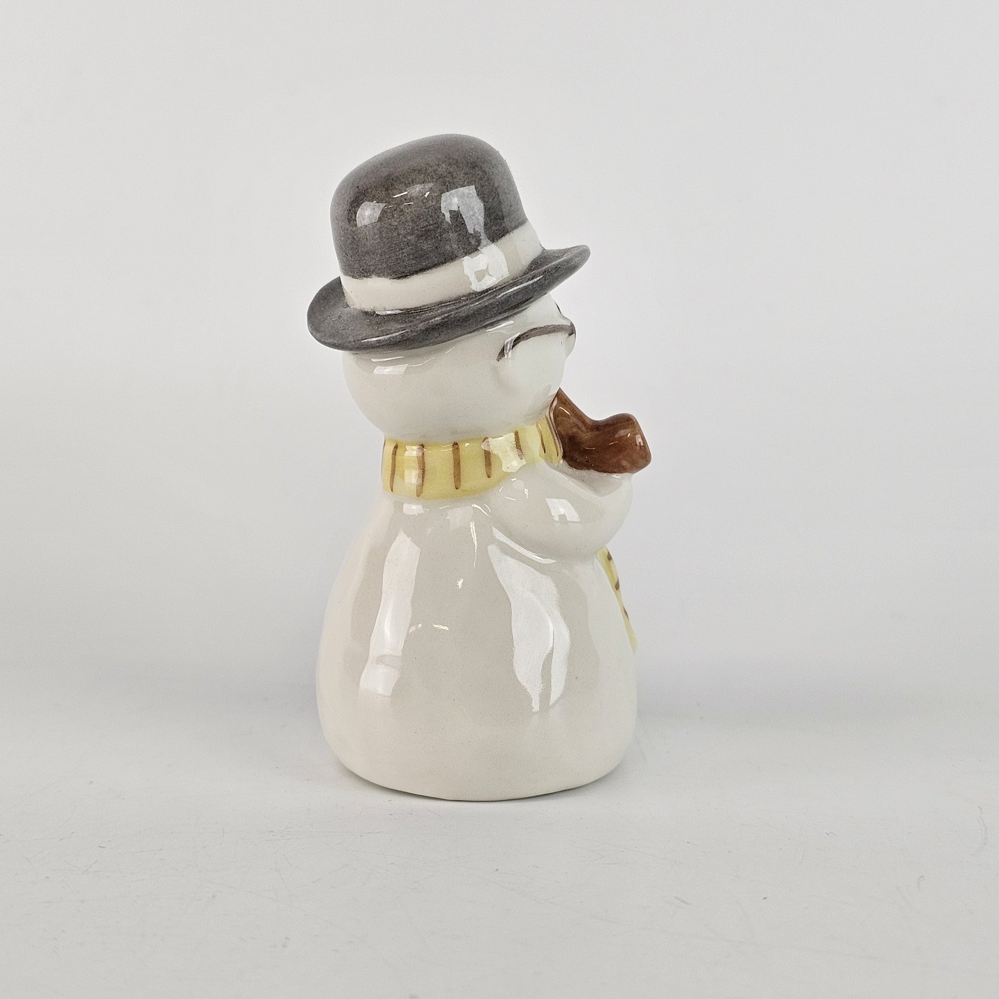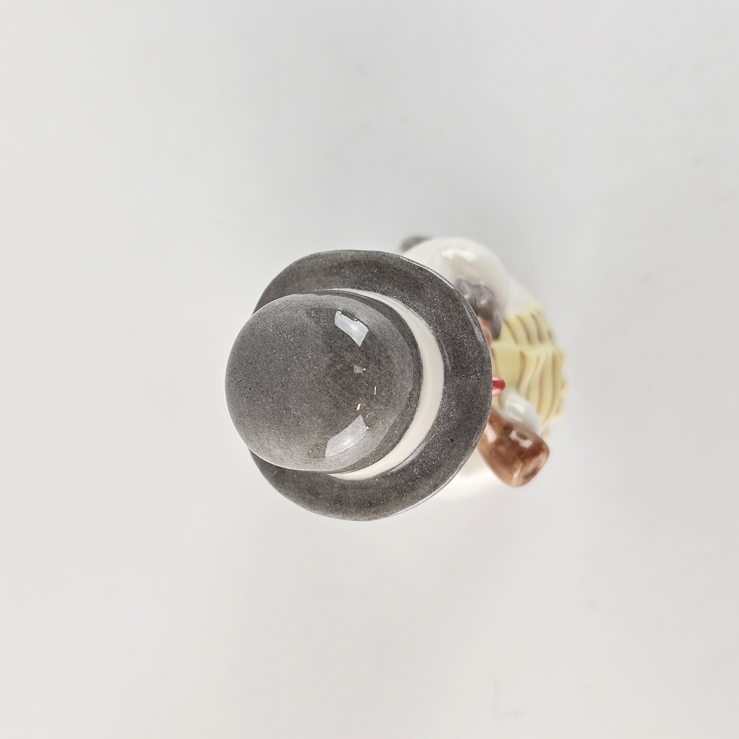 Porcelænsfigur fra snemandsserien med motiv af en snemand med høj hat, pibe og paraply.