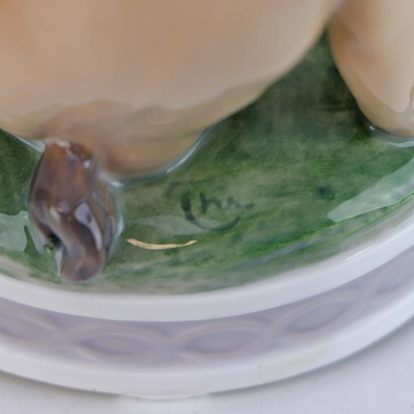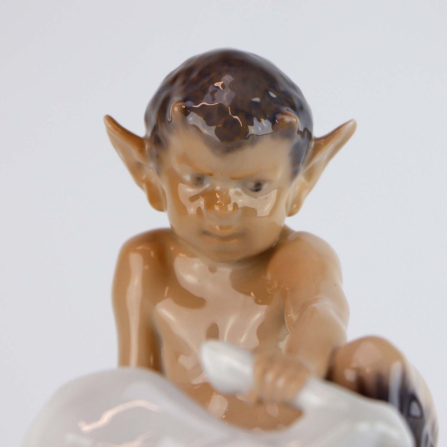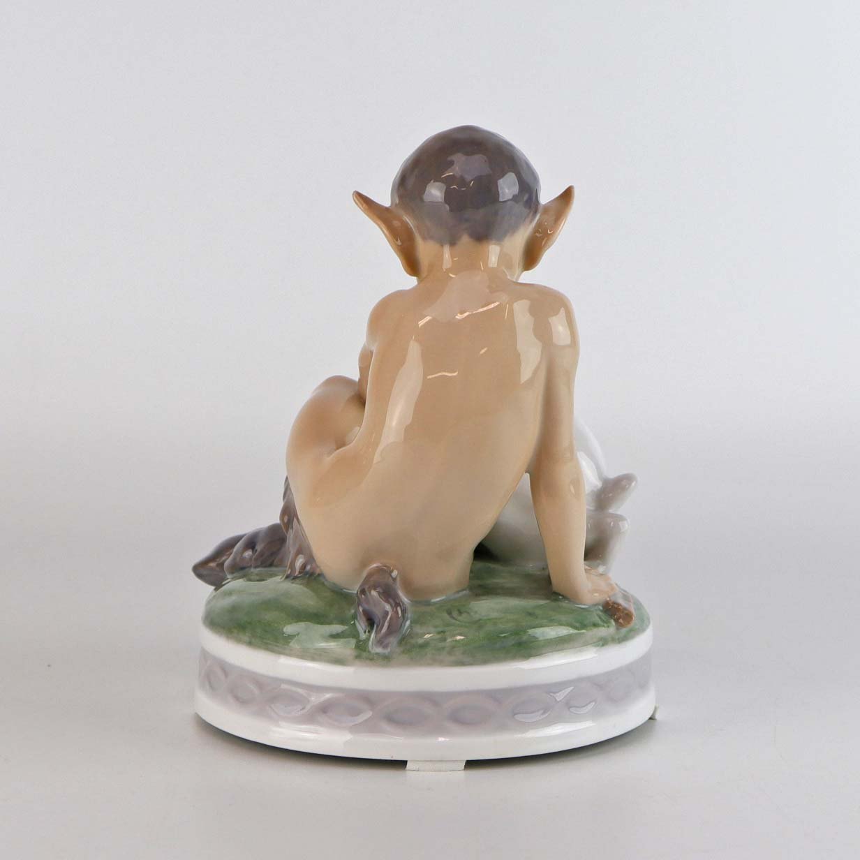 Kongelig figur i porcelæn med motiv af siddende faun med panfløjte og en hvid kanin. Nr. 439