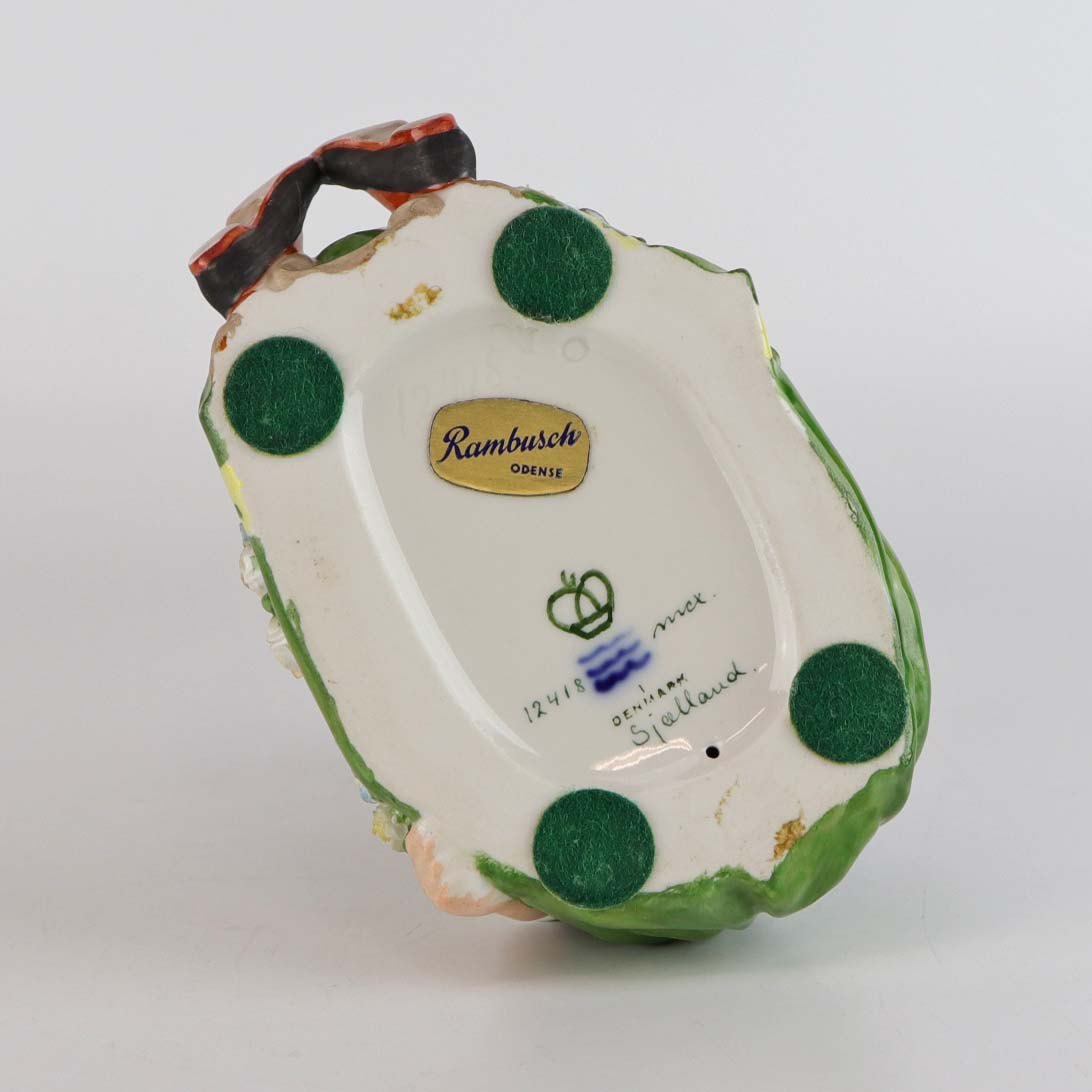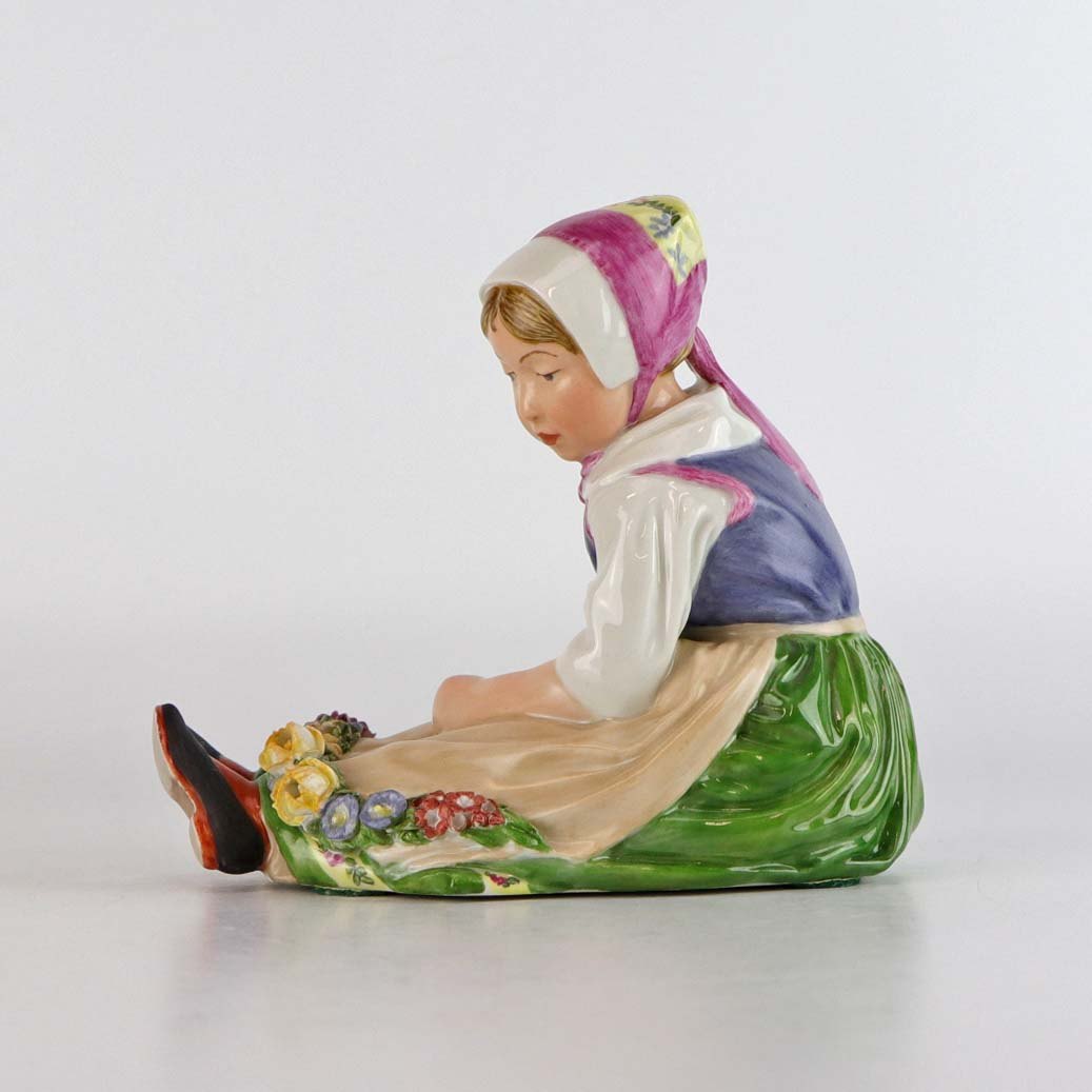 Kongelig figur i porcelæn med motiv af siddende blomsterpige i egnsdragt fra Sjælland. Nr. 12418