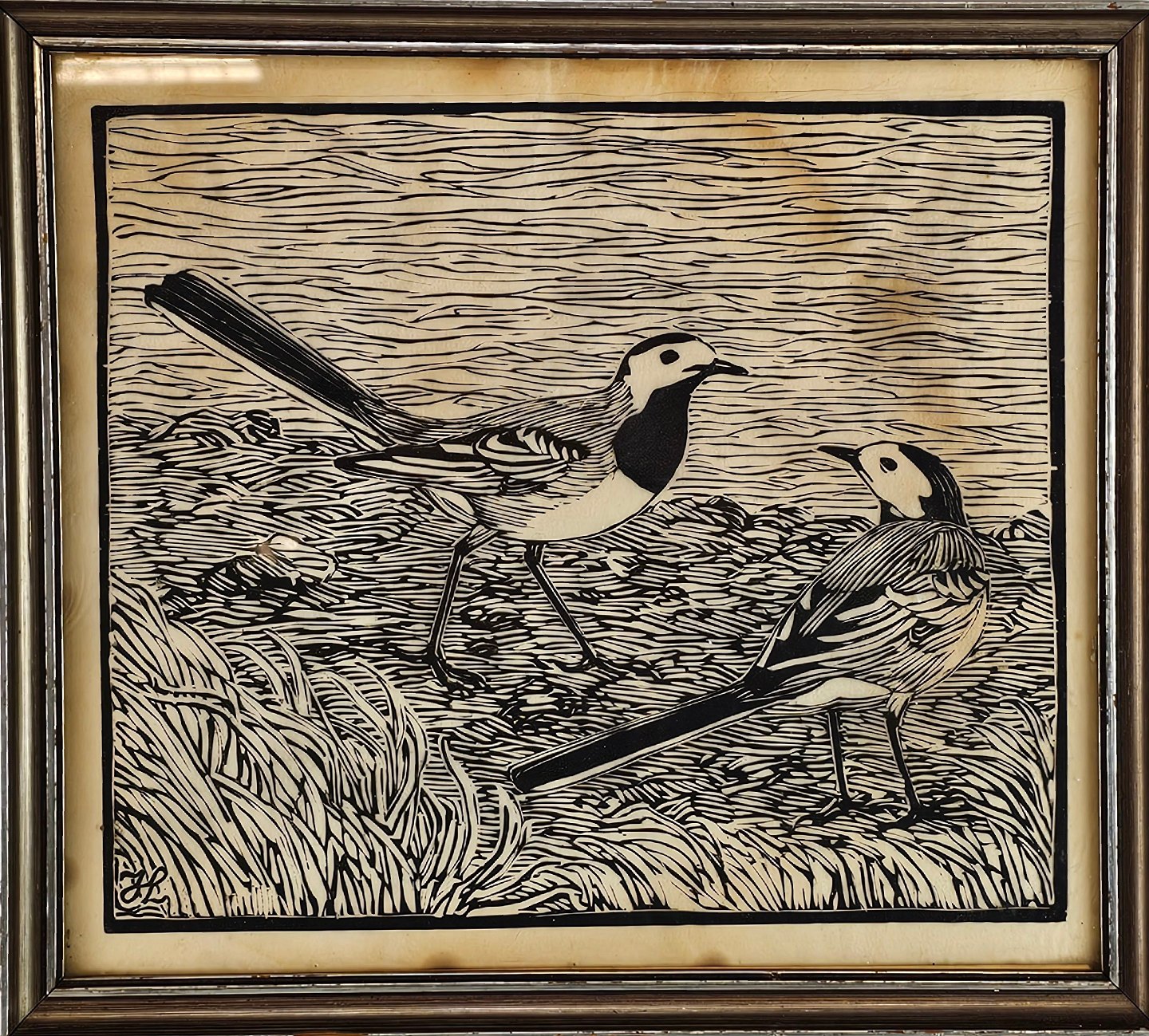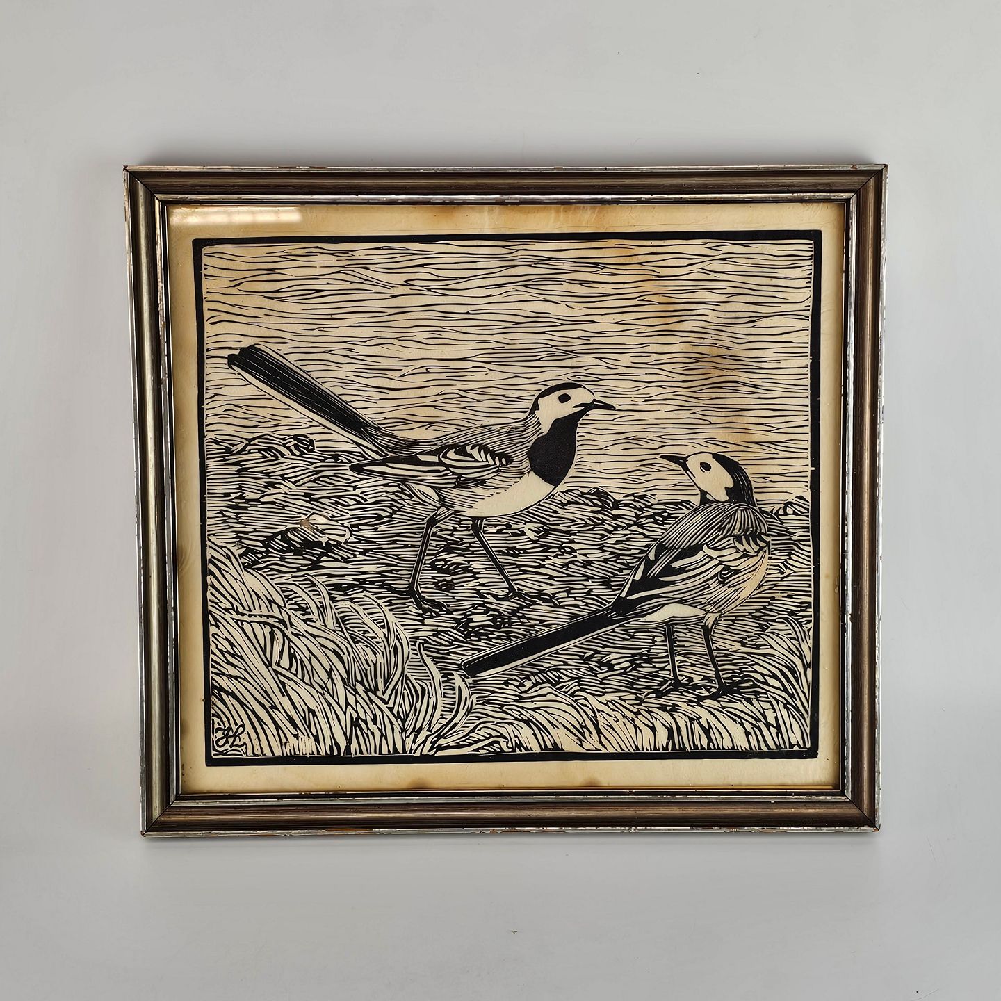 Johannes Larsen træsnit med motiv af to vipstjerter, trykt på Japask silkepapir.