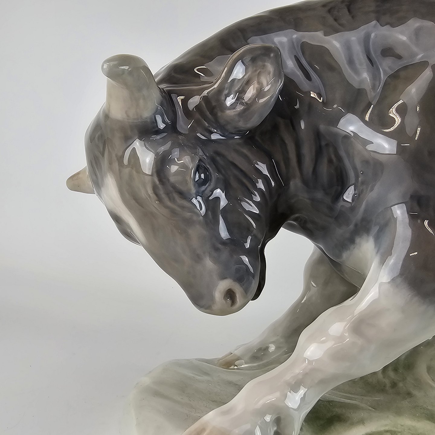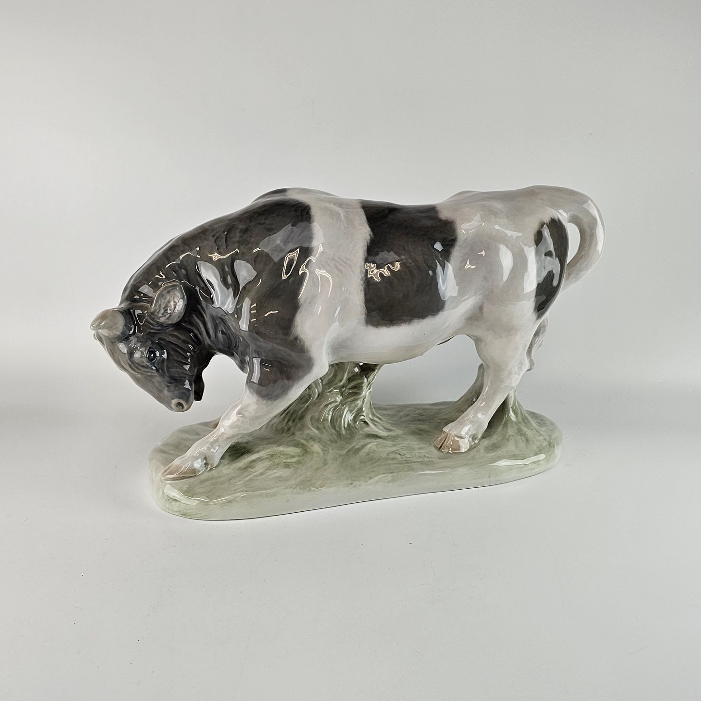 Kongelig porcelænsfigur med motiv af tyr. Nr 1195.