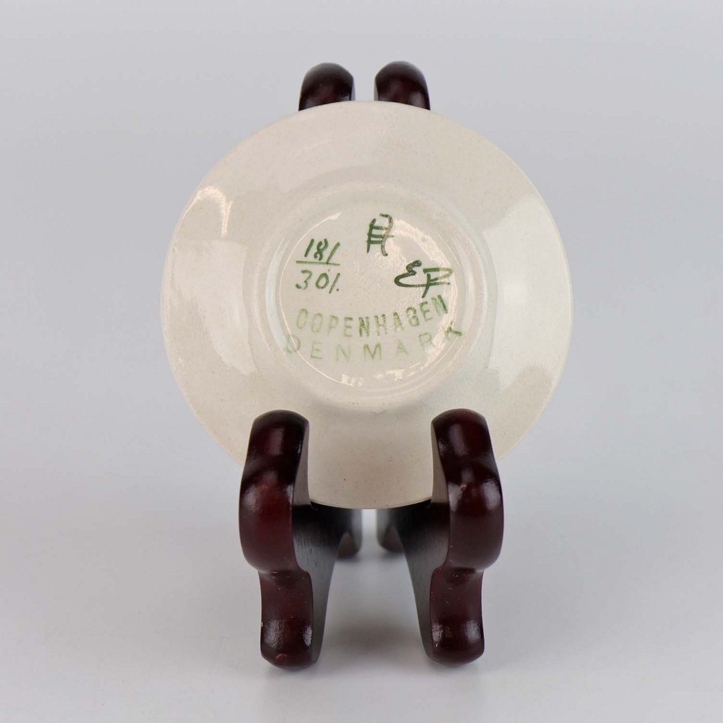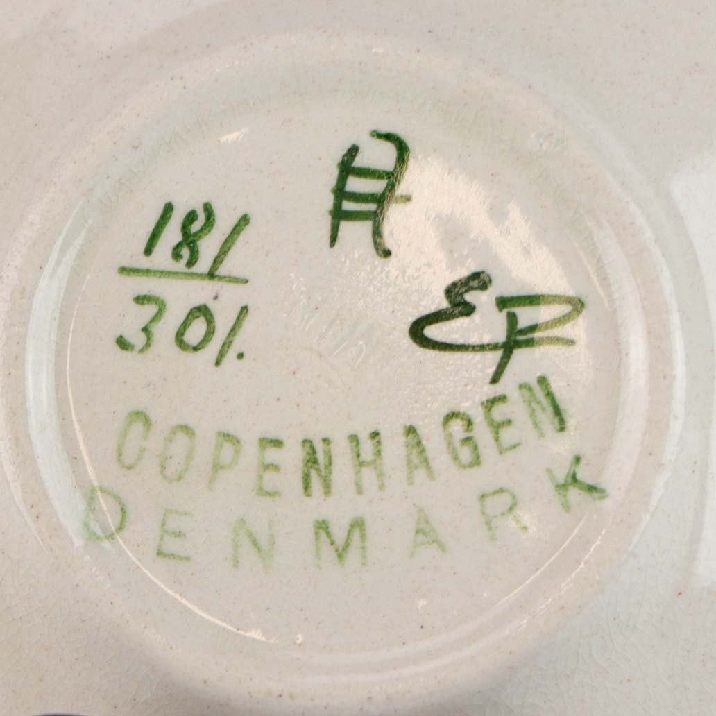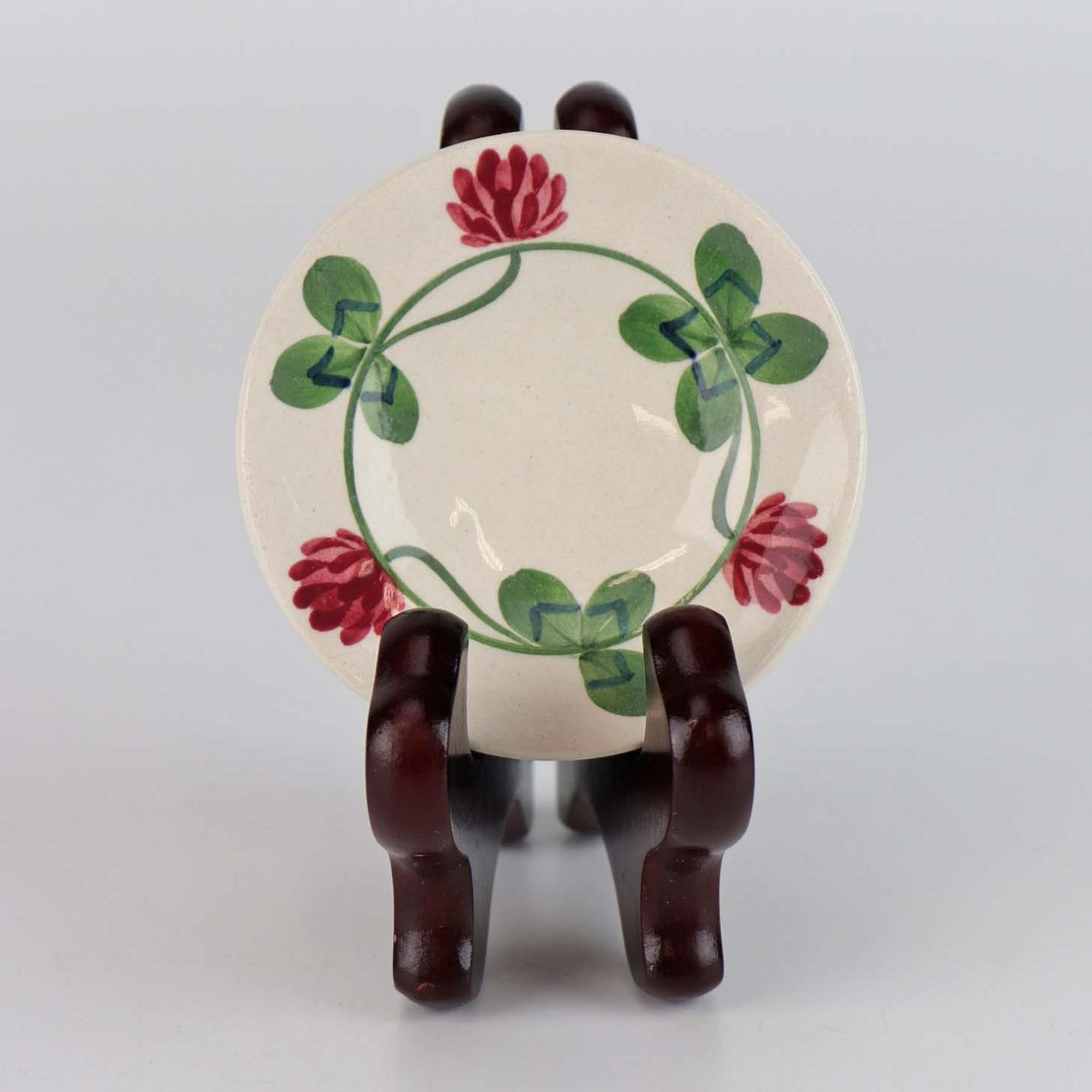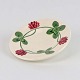 Rund asiet i kunstfajance fra stellet Kløver med motiv af rødkløver på lys baggrund. Nr. 181/301