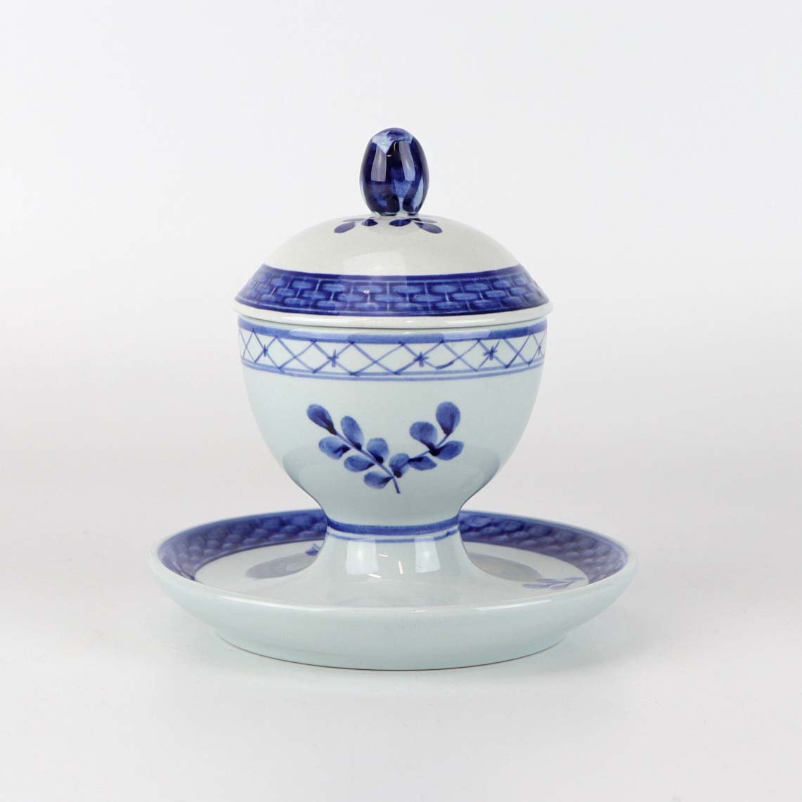 Senneps krukke i fajance fra stellet Blå Tranquebar. nr. 1/1010