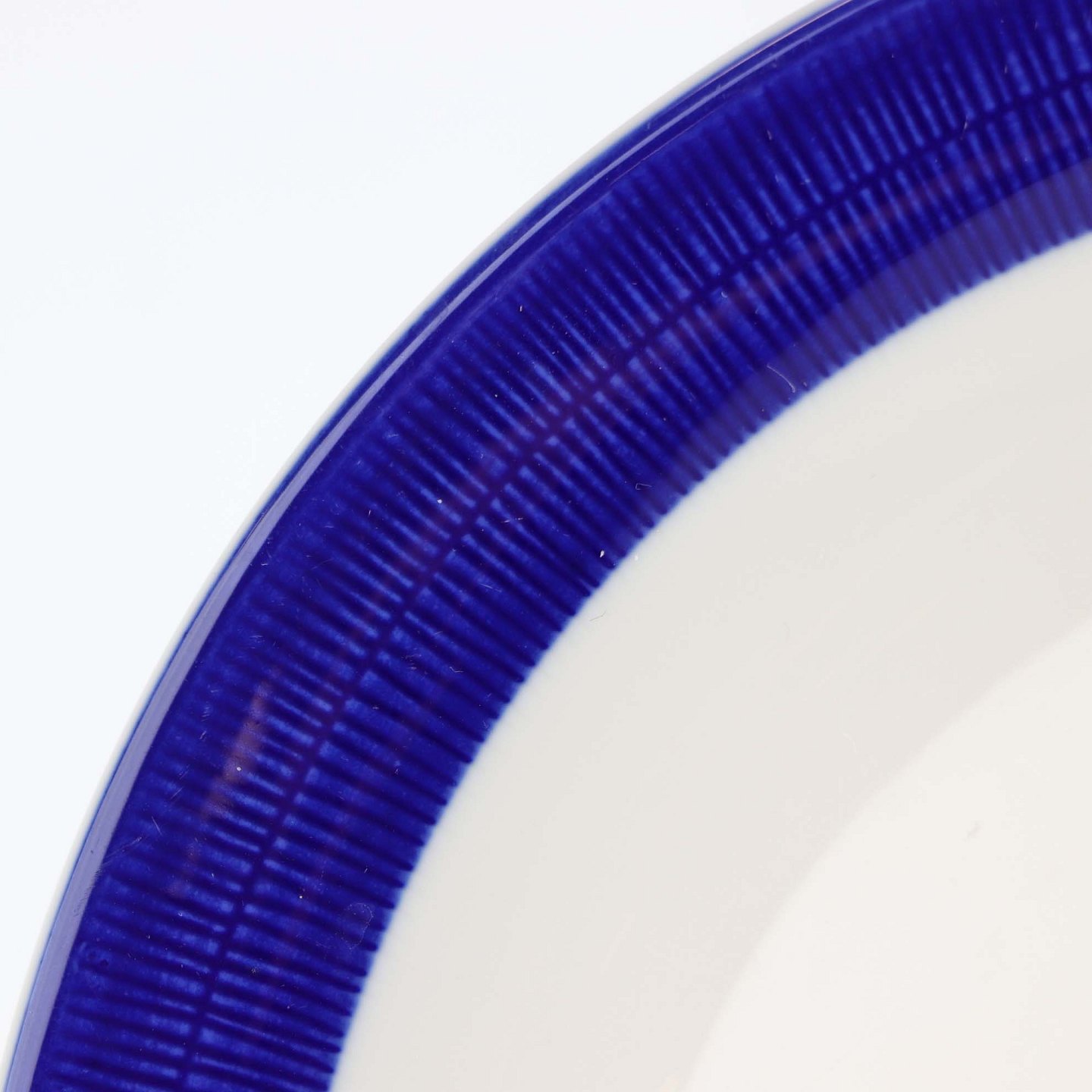 Blå Koka er af hvidt glaseret porcelæn med et bånd af mørk blå