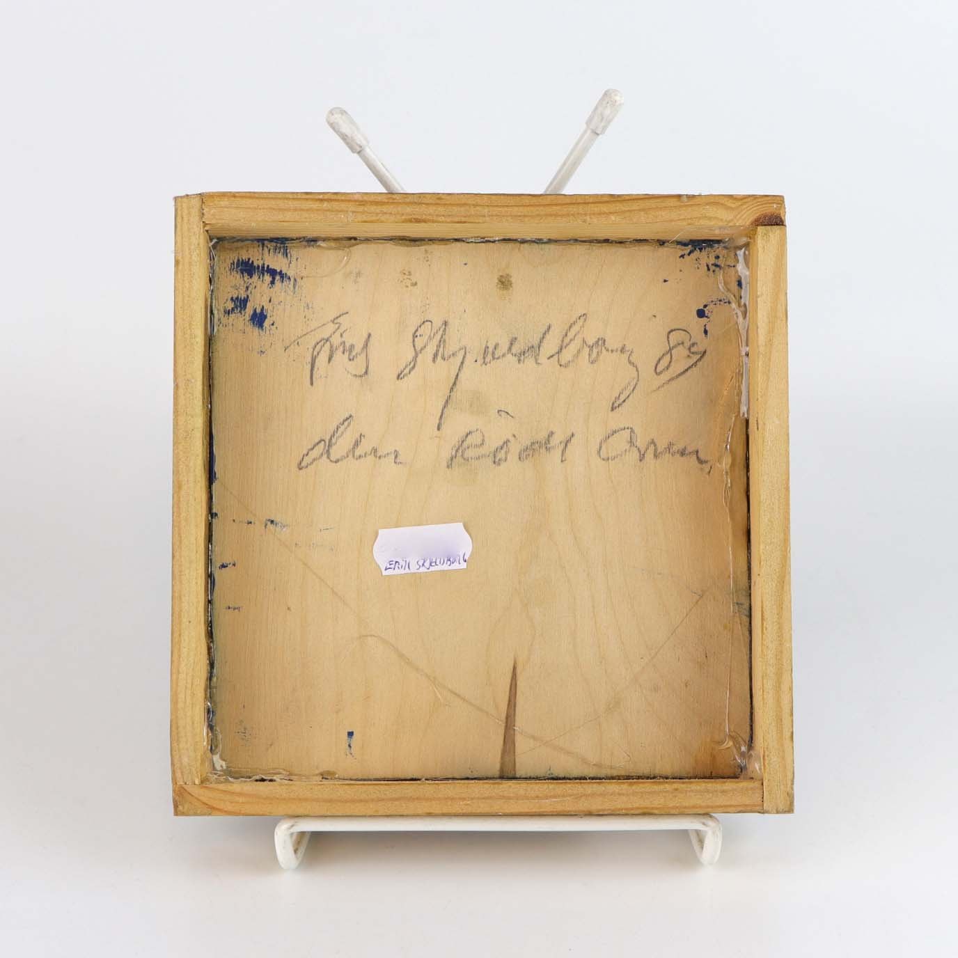 Relief i delvist malet træ fra 1989 med titlen Den røde orm