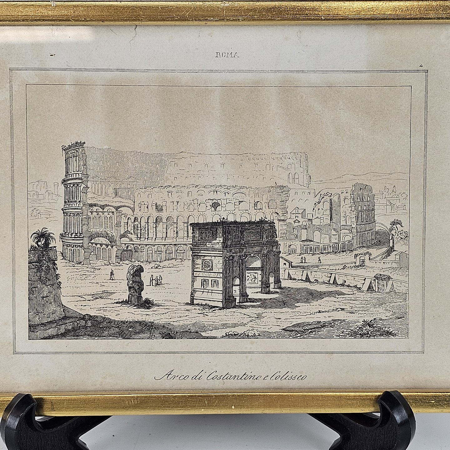 Radering med motiv af Konstantinbuen og Colosseum