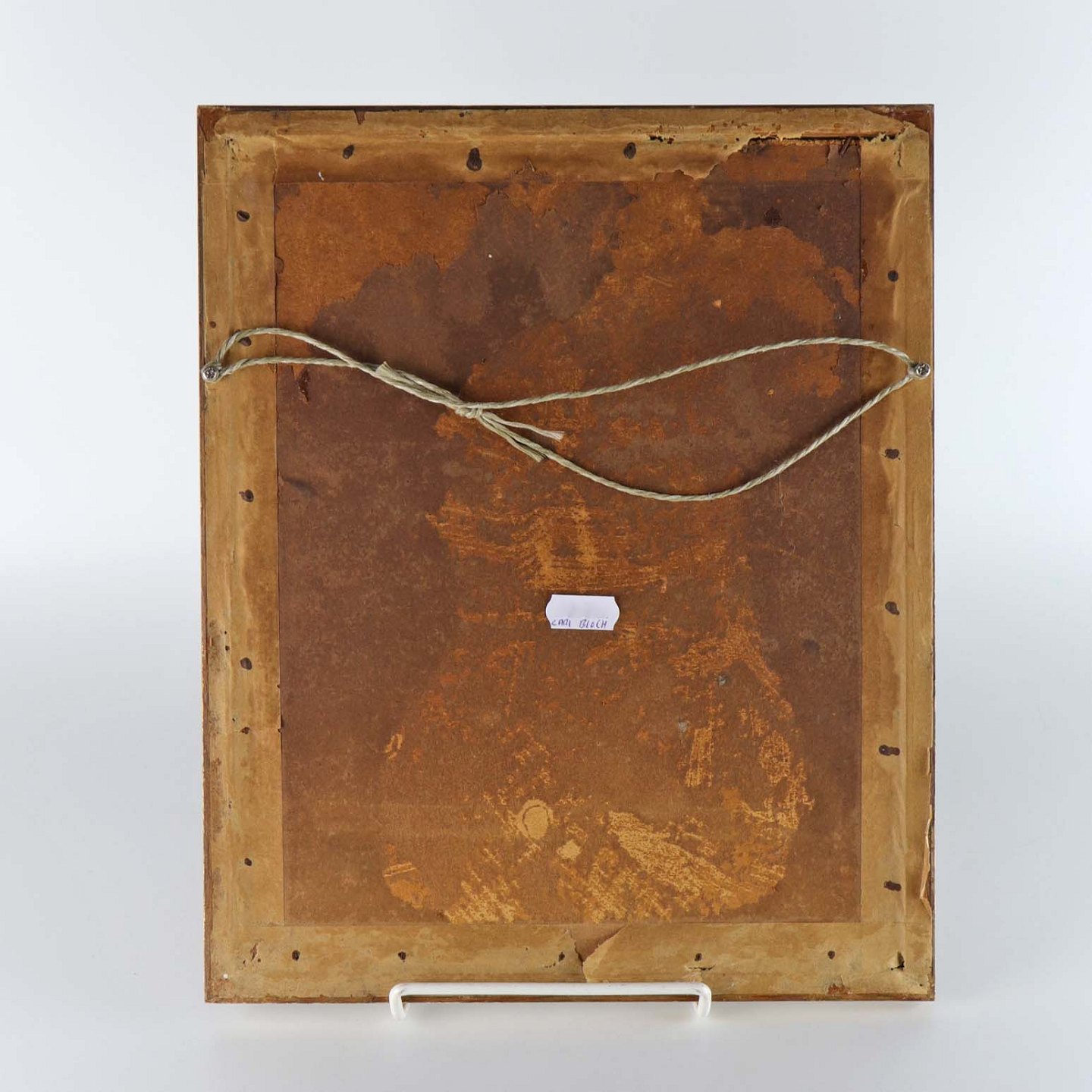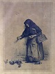 Indrammet ældre radering i guldmalet træramme med motiv af ældre kvinde, som fodre spurve. Original billedet er dateret til 1886.