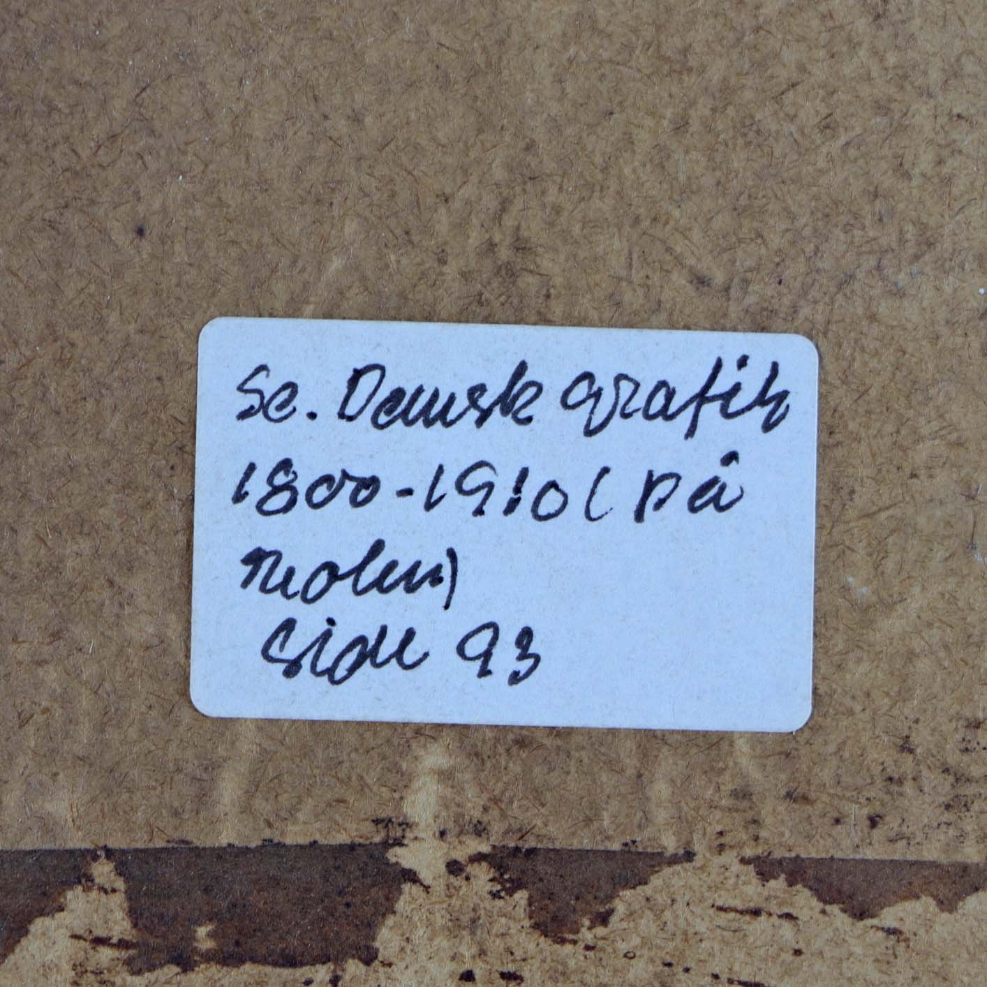 Fremstår med brugsspor på rammen og tekst eller signatur med blyant nederst.