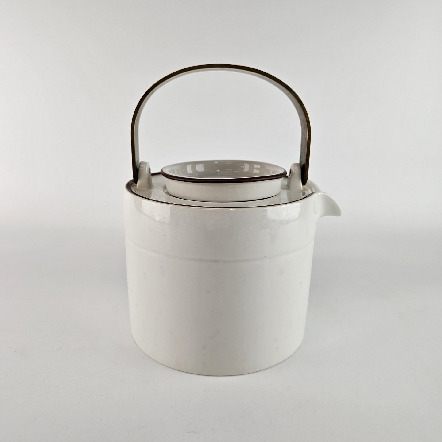 Service i glat hvid porcelæn med brun kant. På lager har vi også den hvide variant. Kontakt os vedrørende varebeholdning.