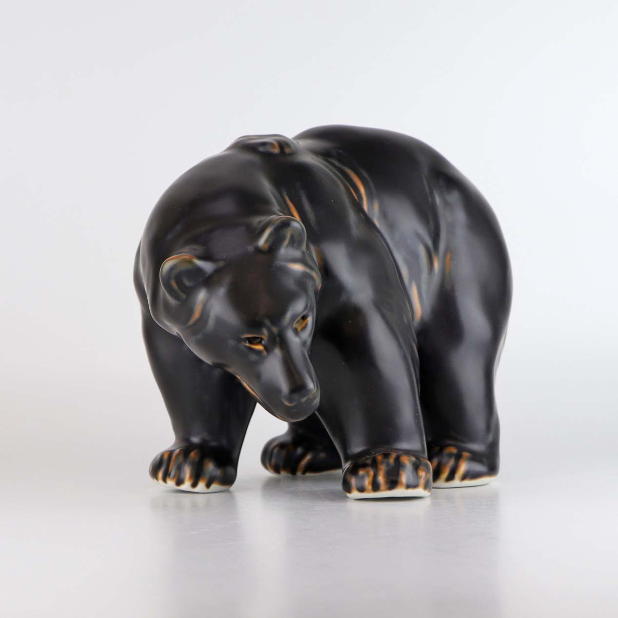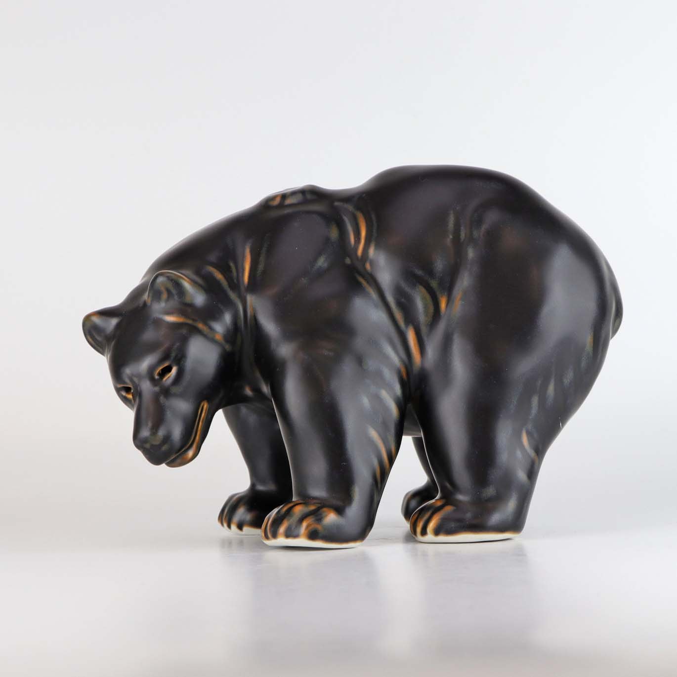 Figur i porcelæn med motiv af en stående brun bjørn. Nr. 2/519