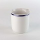 Stel i glat hvidt porcelæn med geometrisk dekoration i mørkeblå streg langs kanten.