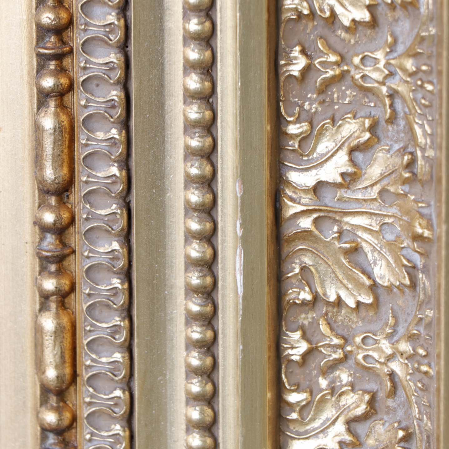 Oliemaleri på plade i dekoreret guldmalet træramme med portræt af matros siddende på skibsdæk.
