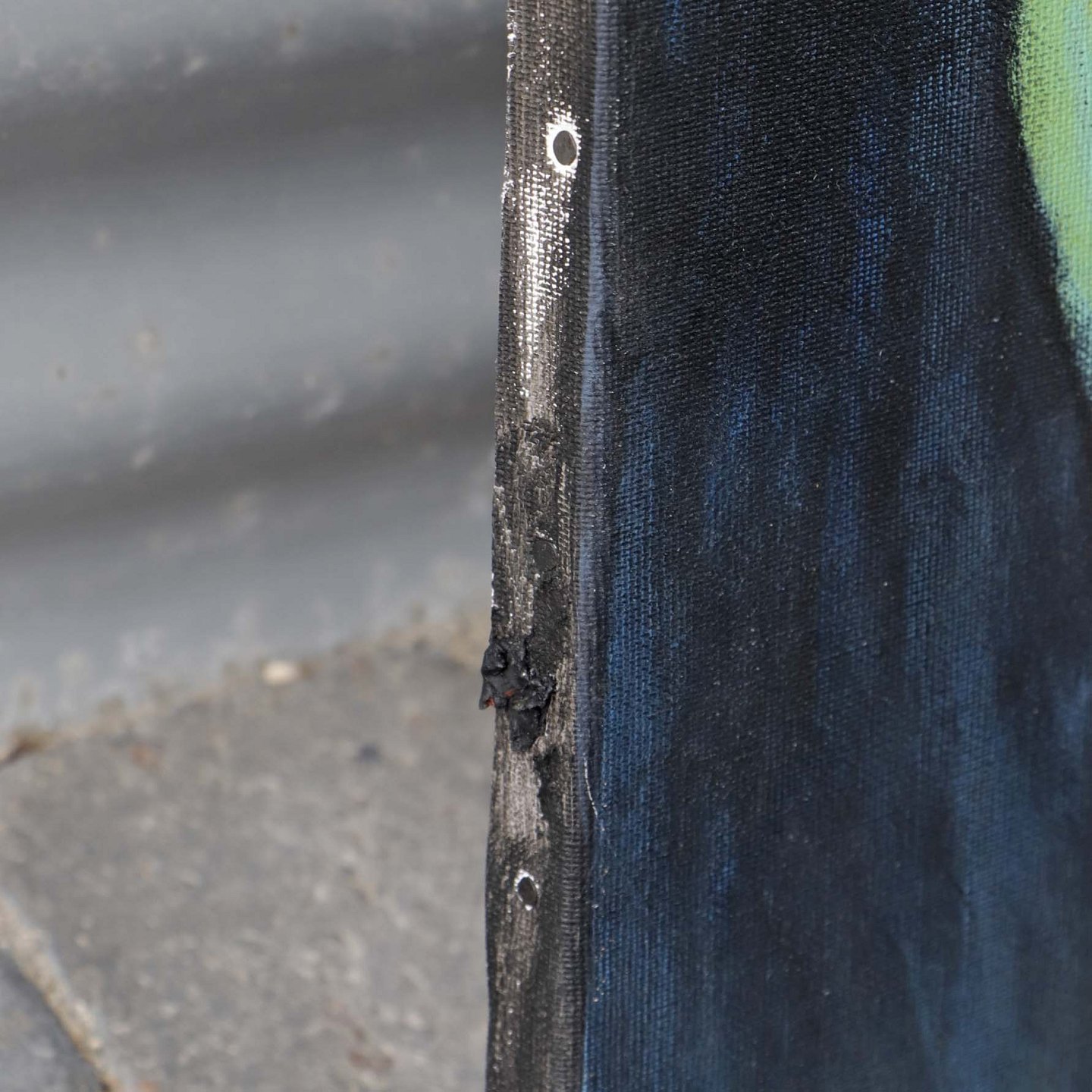 Fremstår med ujævnheder i malingen langs rammekanten.