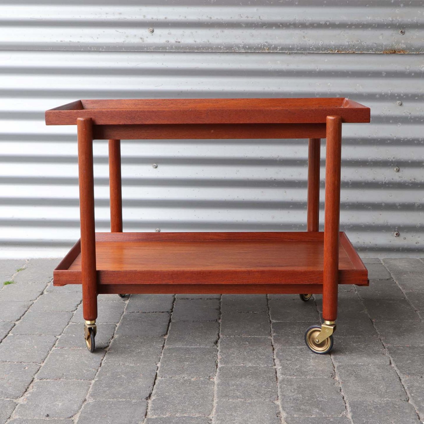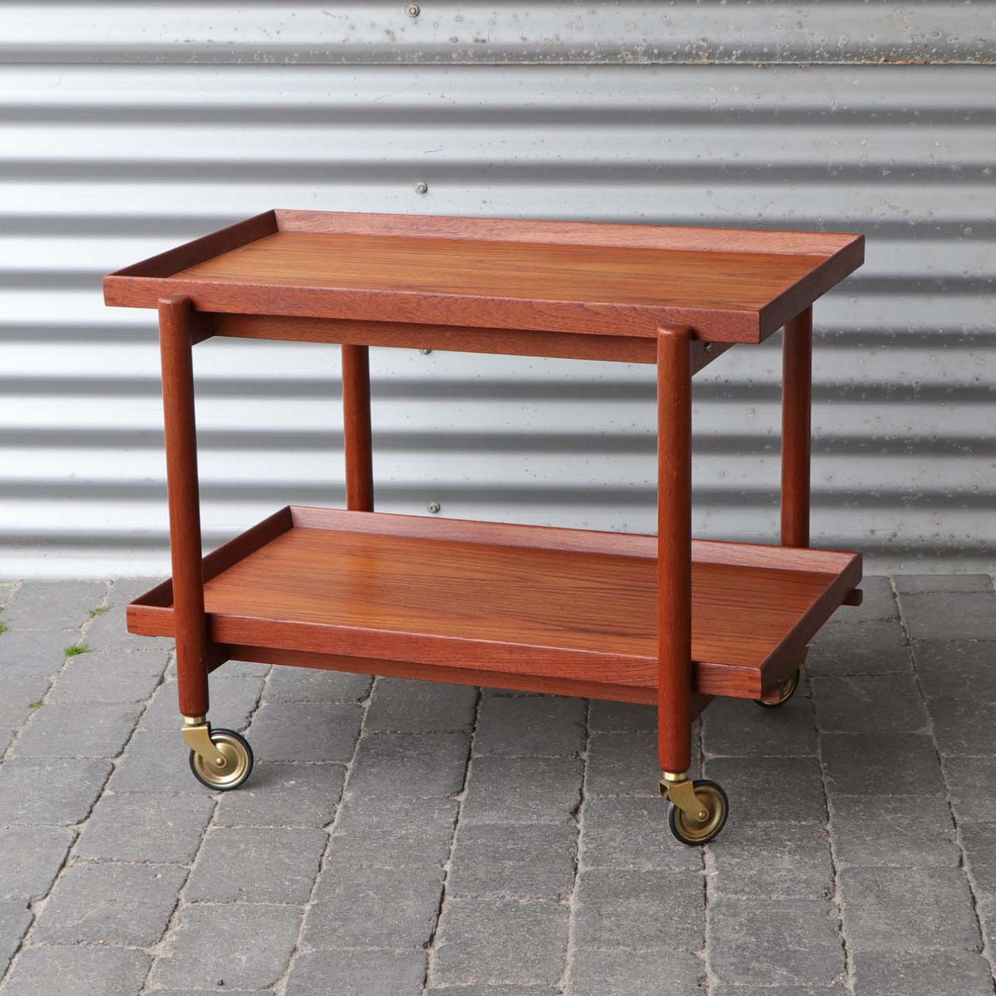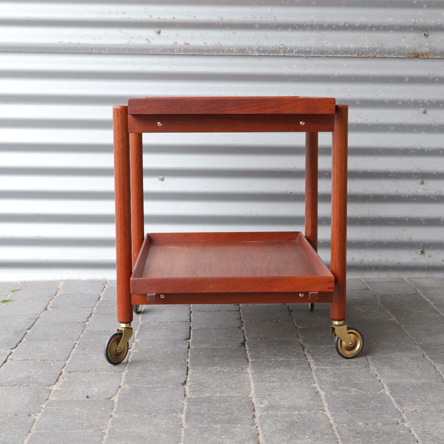 Rullebord med 2 bakker i lakeret teaktræ.