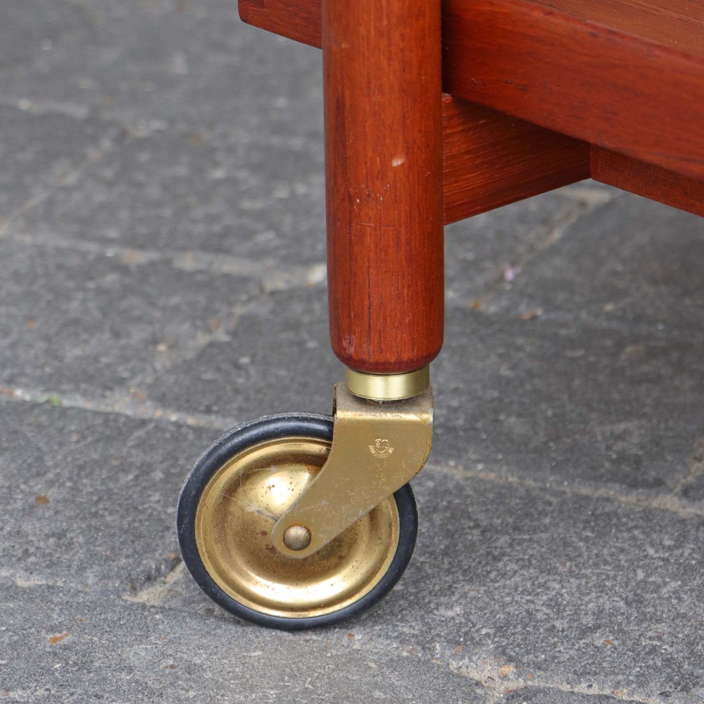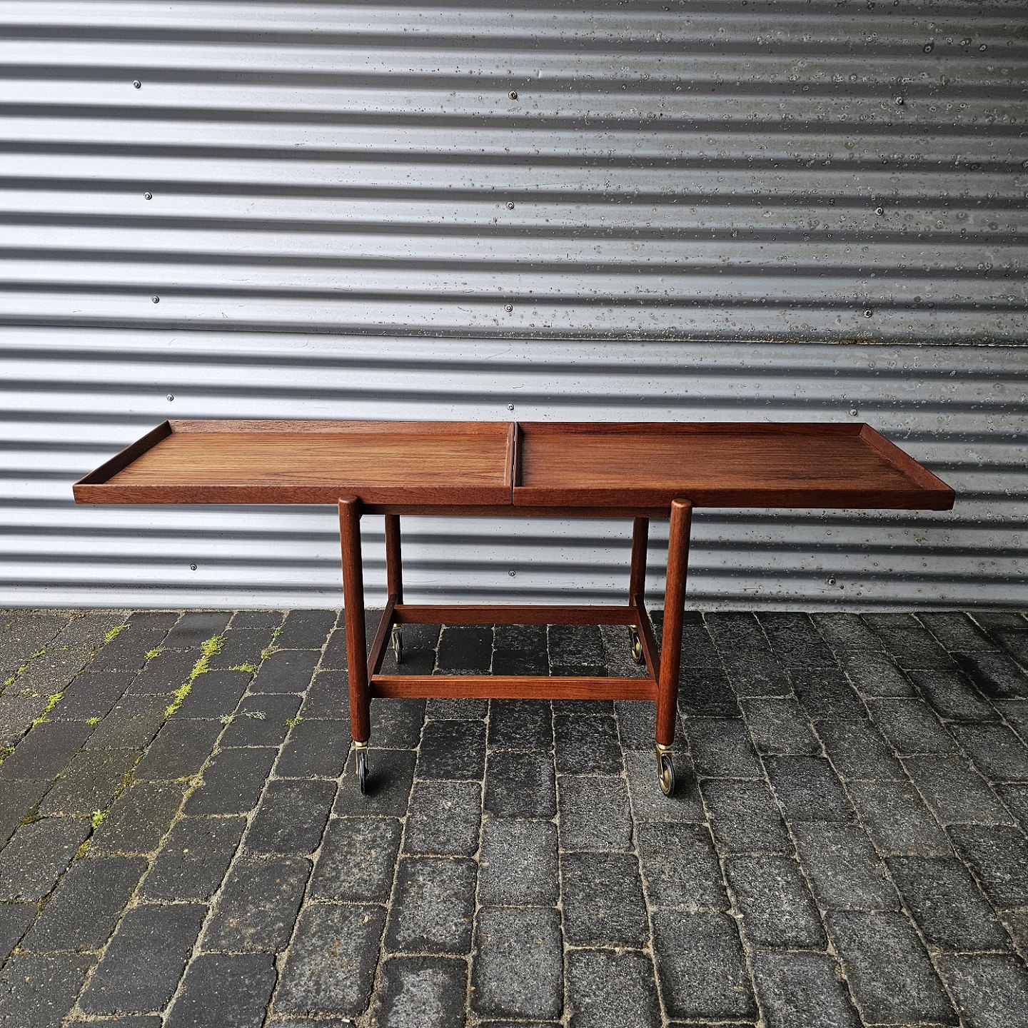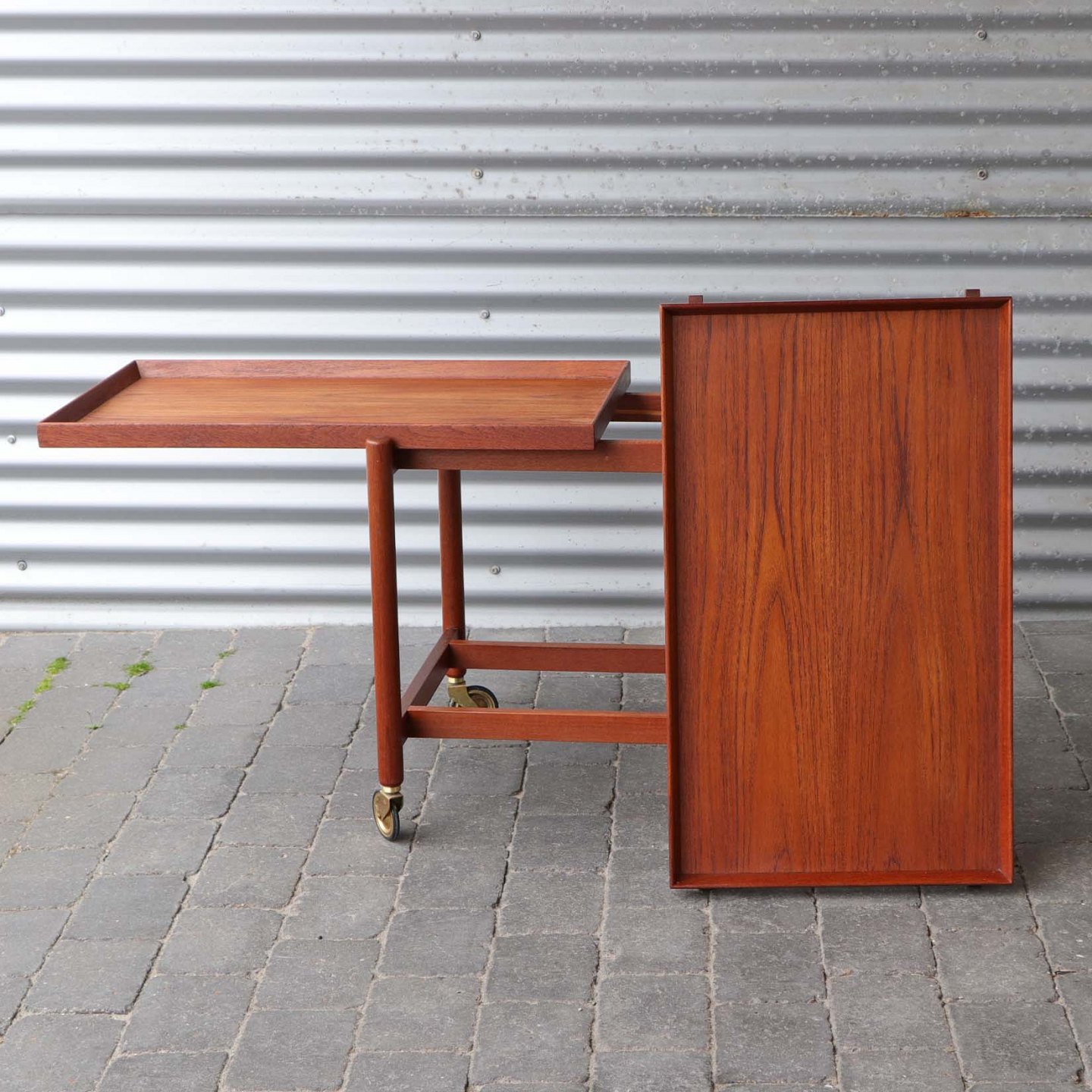 Rullebord med 2 bakker i lakeret teaktræ.