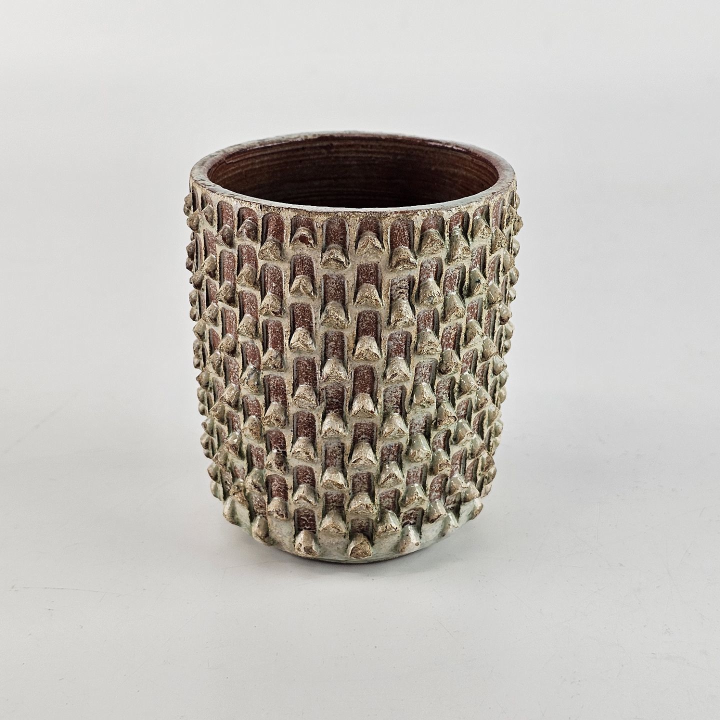 Inger Bloch Vase i hvid og blå glaseret keramik