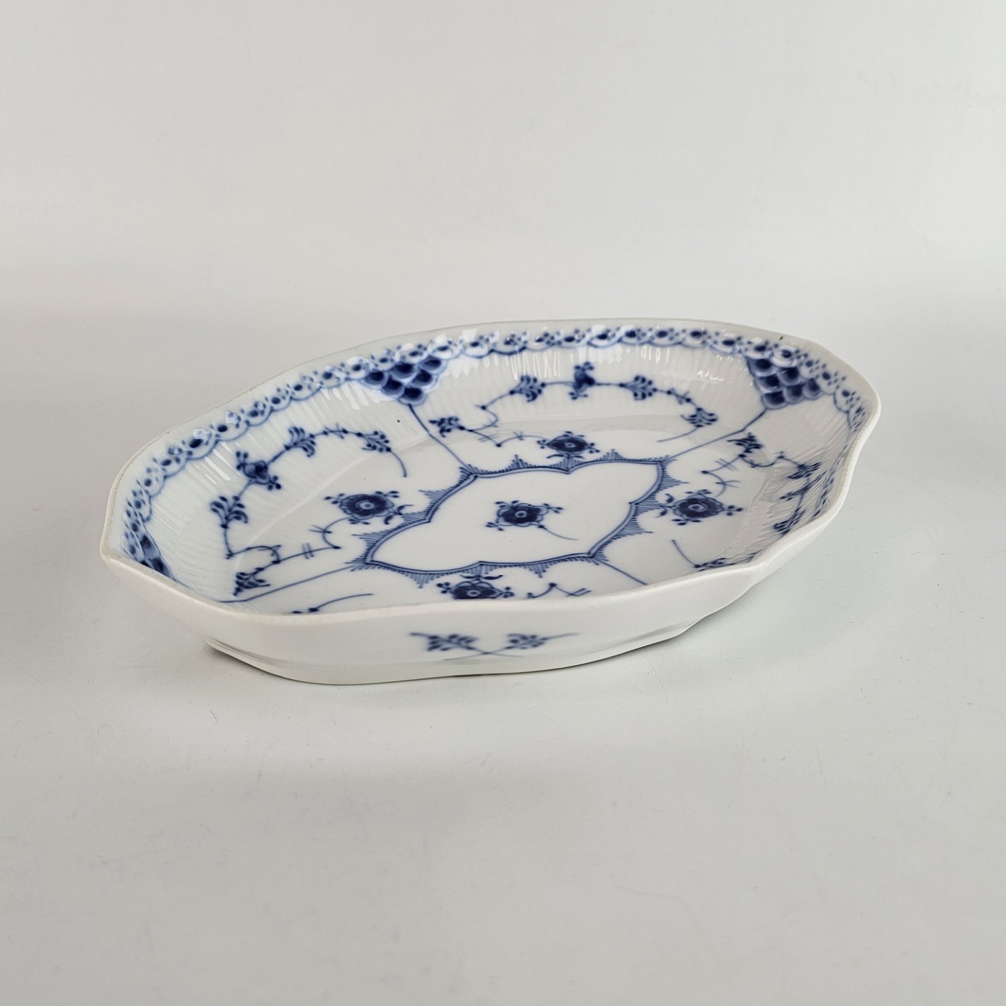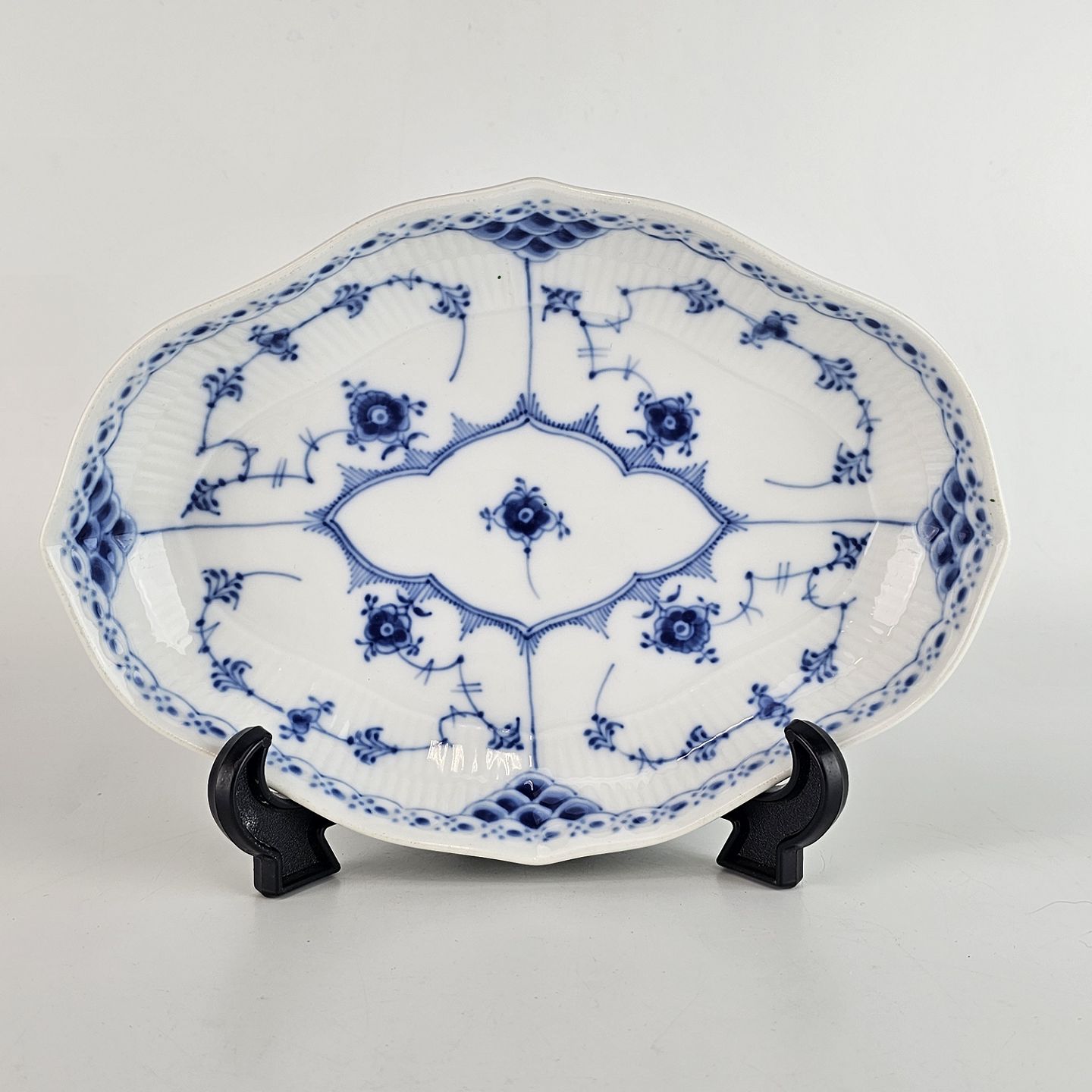Kongelig håndmalet ovalt fad, fra stellet Musselmalet halvblonde. 1/552