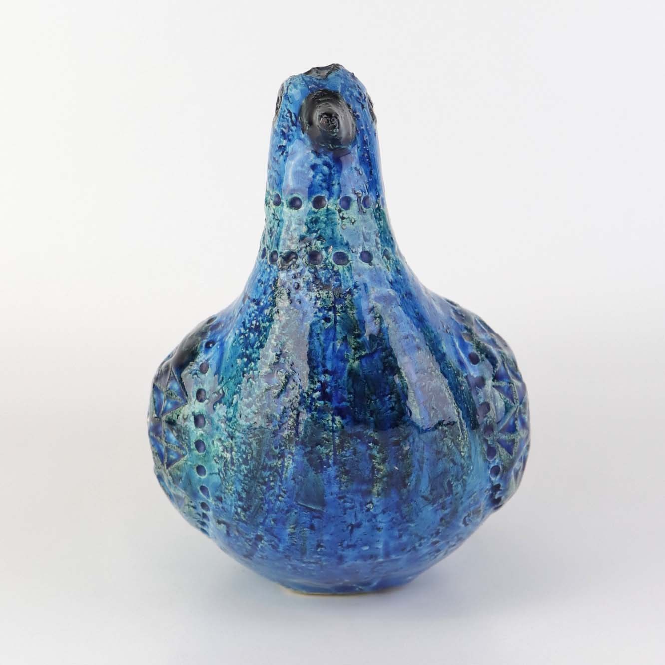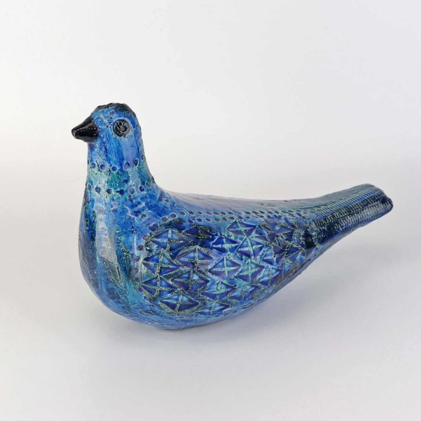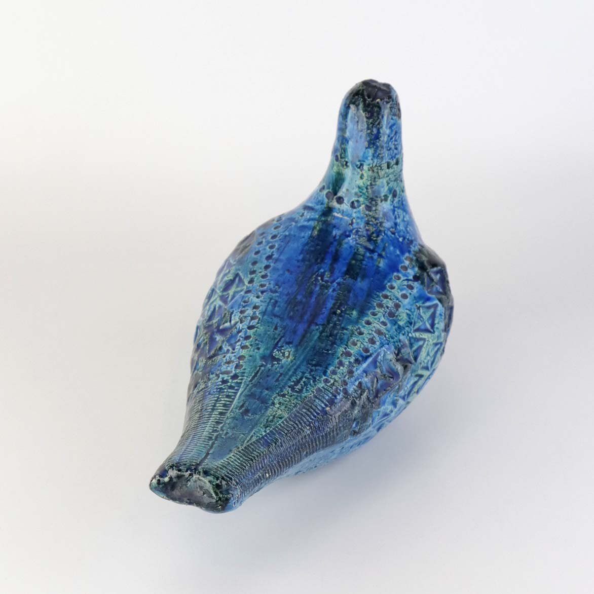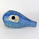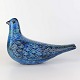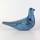 Figur i blå glaseret og struktureret keramik med motiv af en siddende fugl fra serien Rimini Blu. Nr. 4313