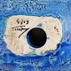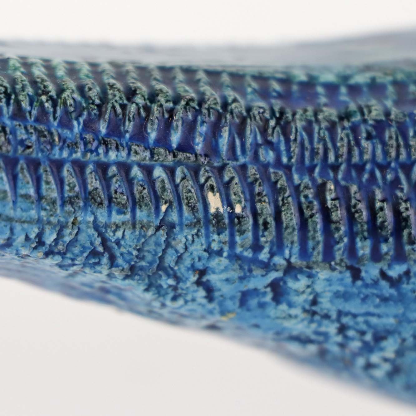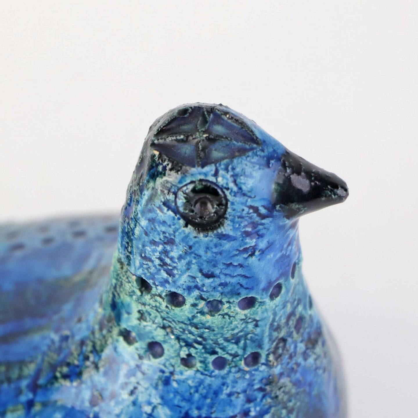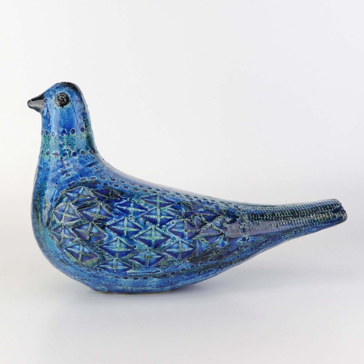 Figur i blå glaseret og struktureret keramik med motiv af en siddende fugl fra serien Rimini Blu. Nr. 4313