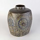 Kantet vase i fajance med mønster i brune nuancer. Nr. 870/3757