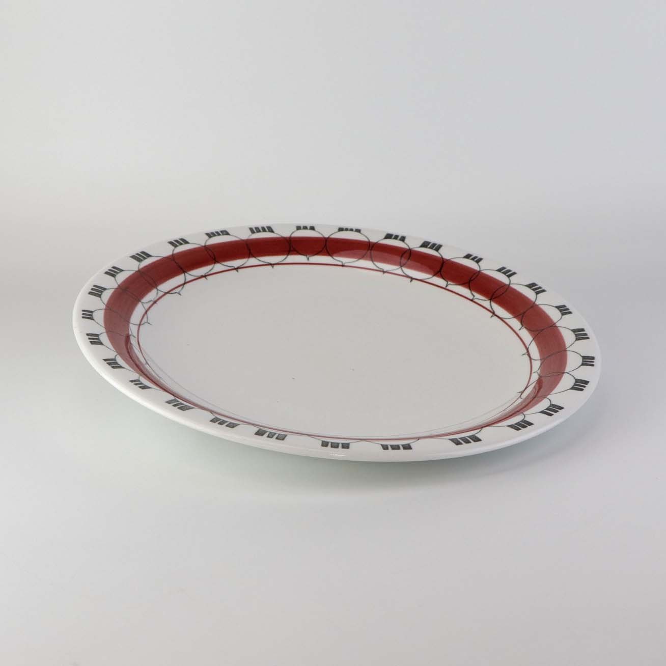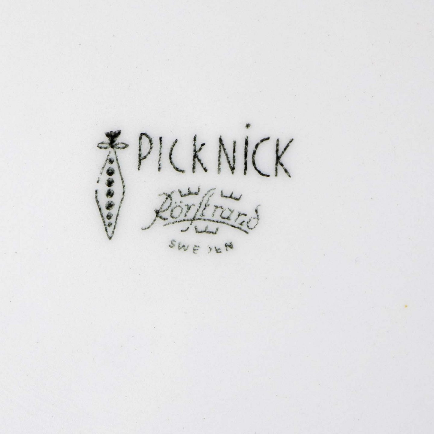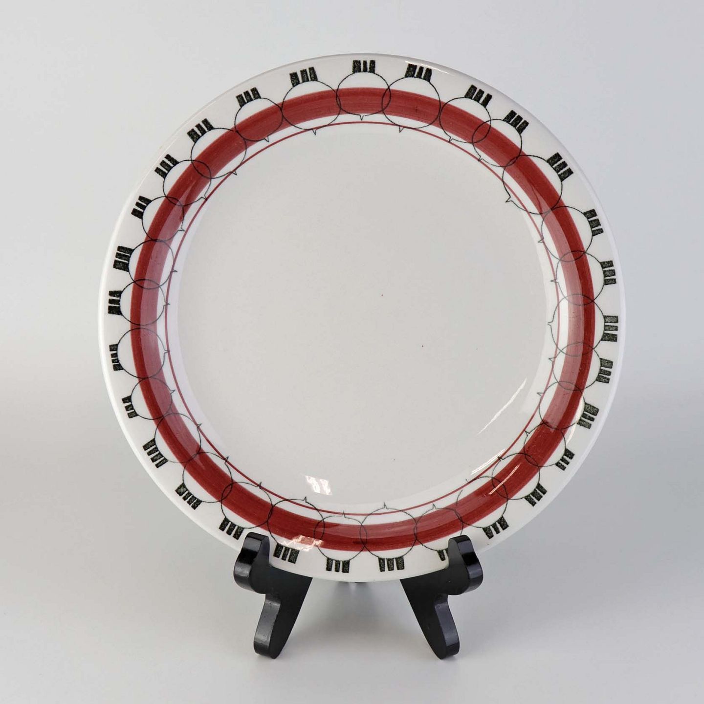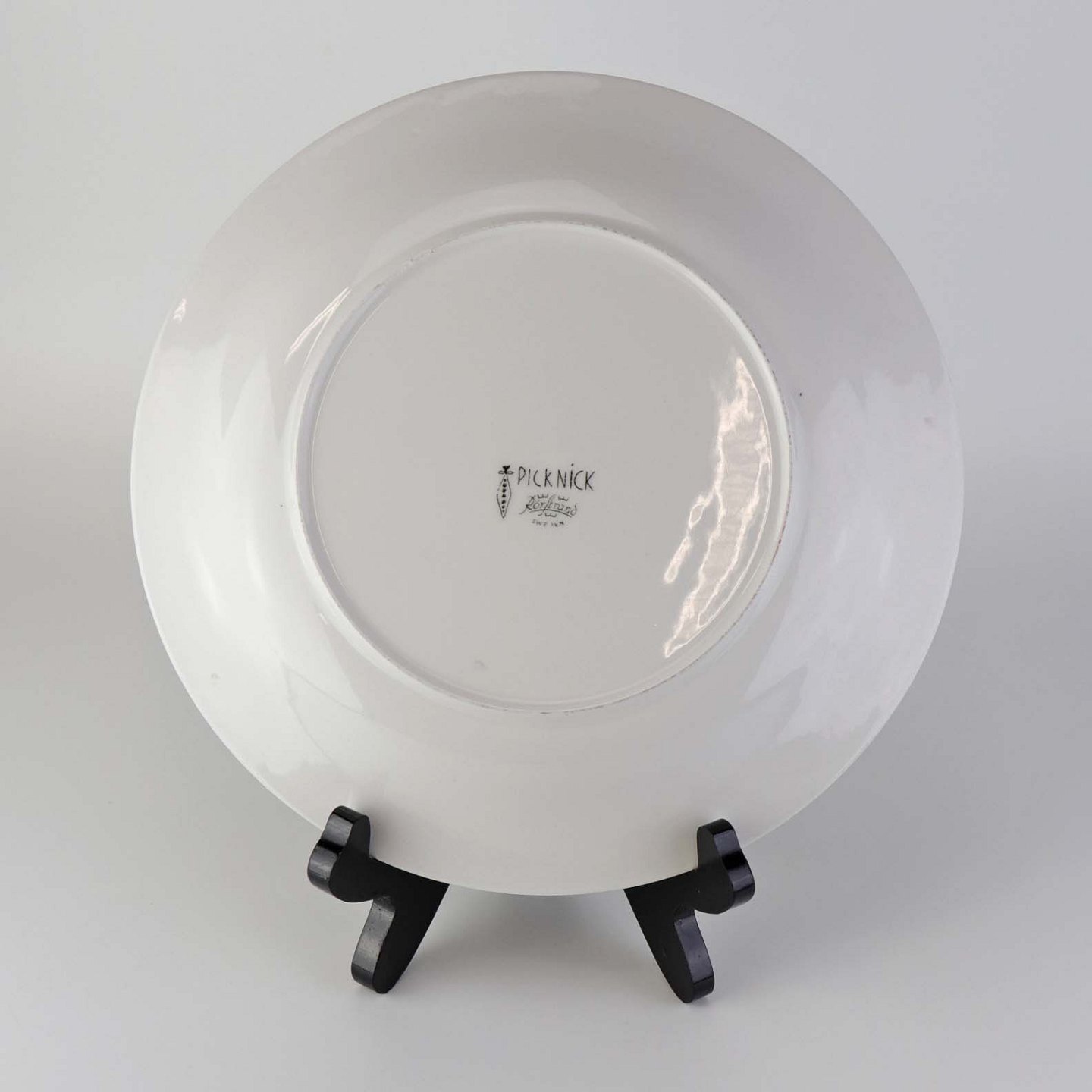 Middagstallerken i fajance fra stellet Picnic med motiv af radisser.