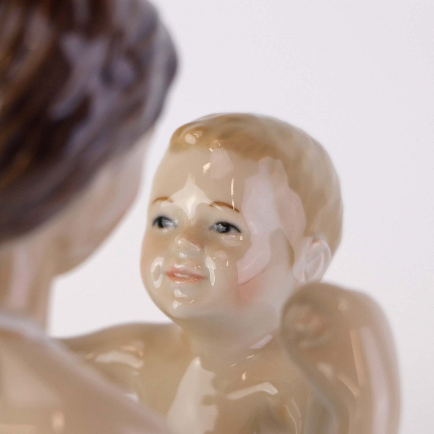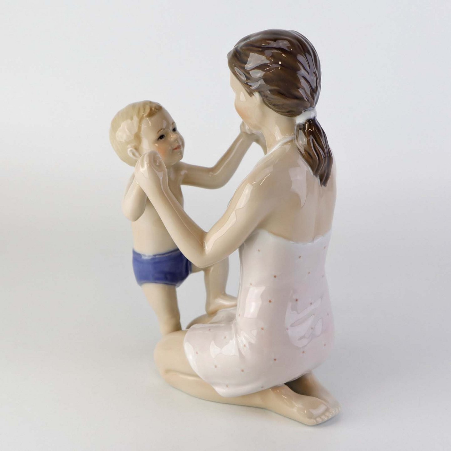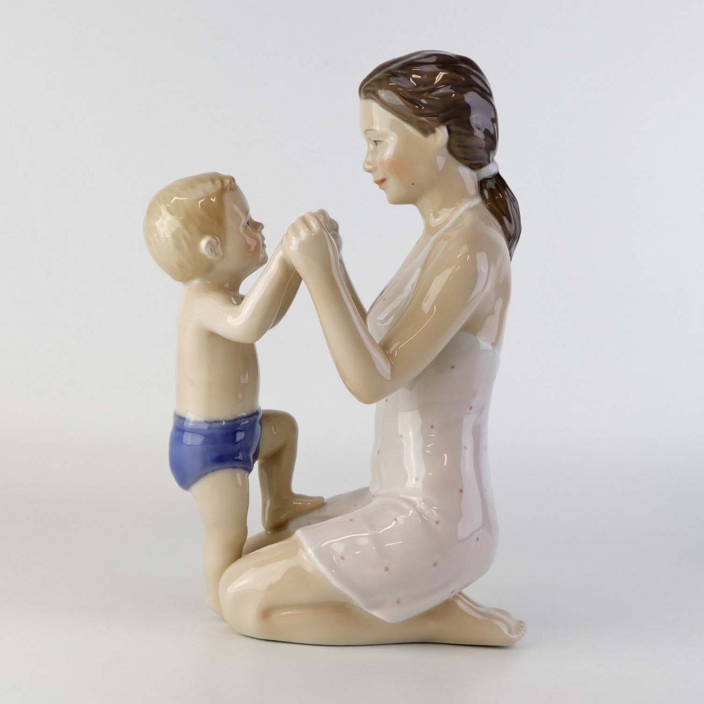 Figur i porcelæn med motiv af siddende ung kvinde med hendes lille dreng stående på skødet. Nr. 544