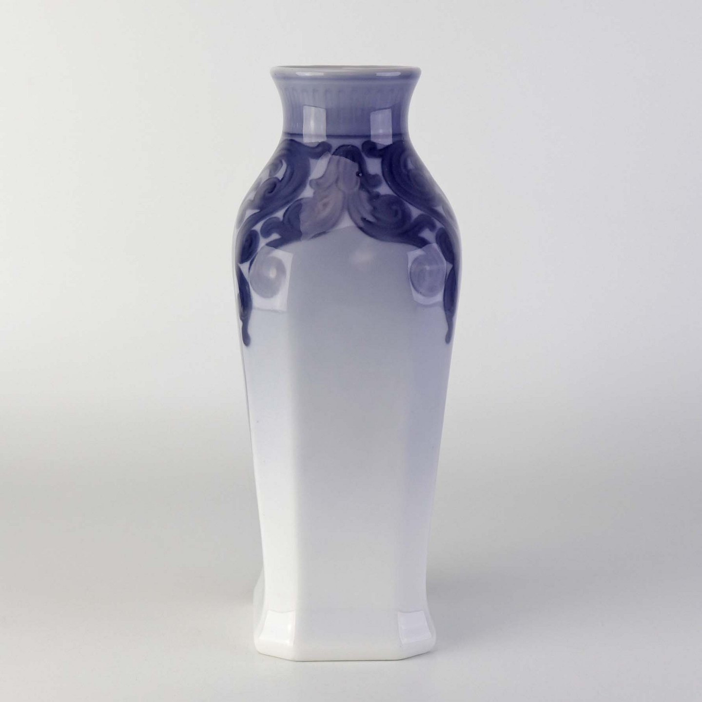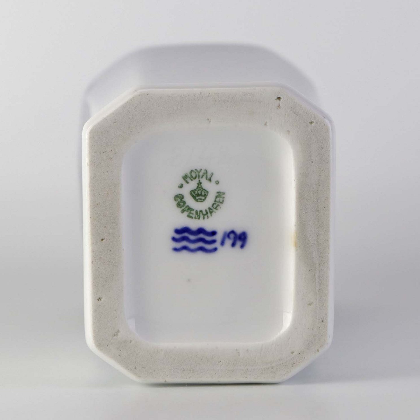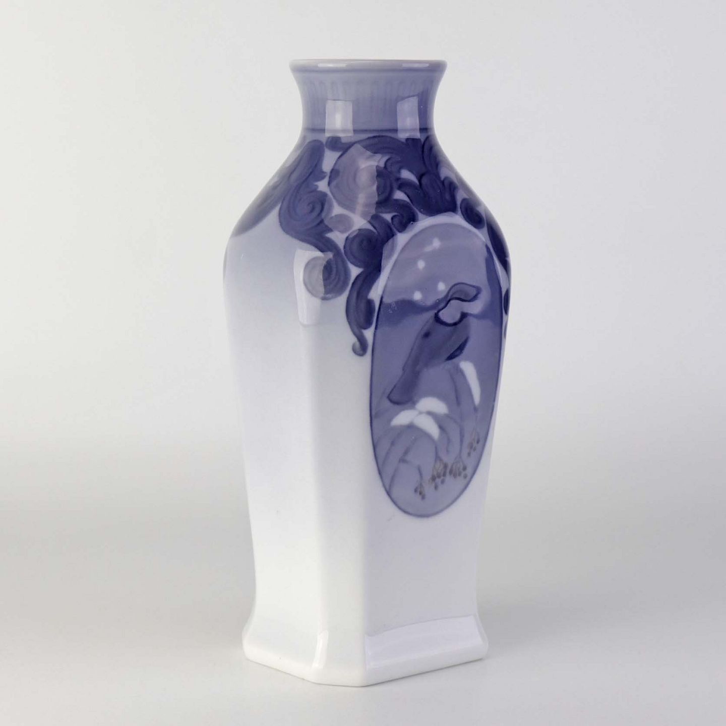 Kantet julevase i kongeligt porcelæn med motiv af af solsort på gren og teksten Jul 1921. Nr. 199