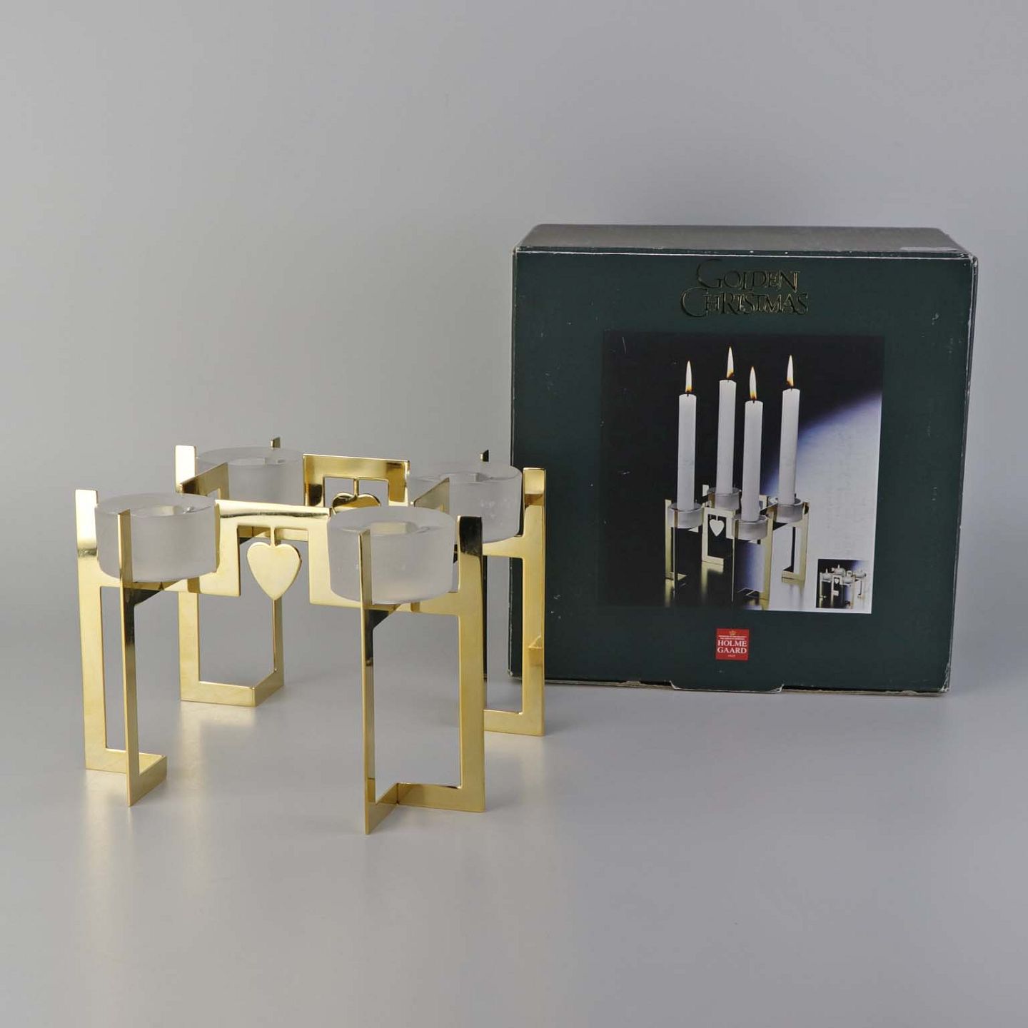 Forgyldt lysestage til advent som kan bruges til både fyrfadslys og kronelys fra serien Golden Christmas. Stagen kommer i original boks.