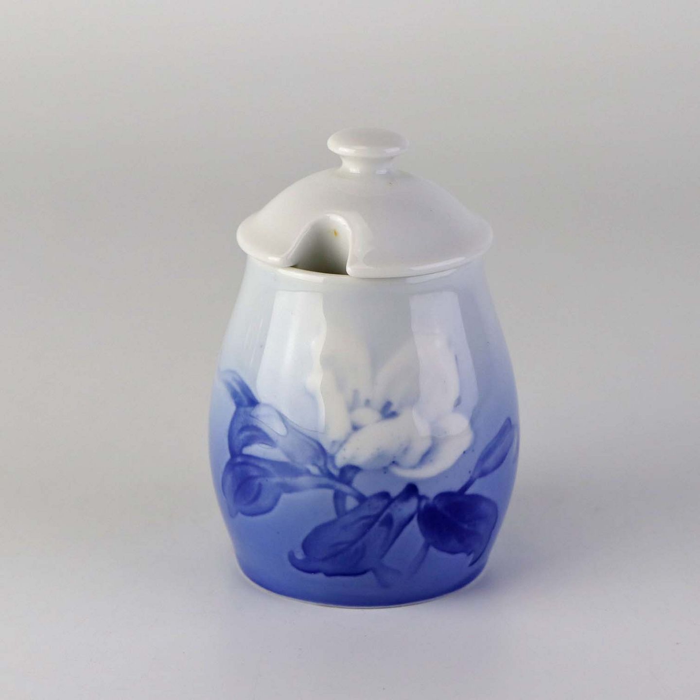 Lågkrukke til sennep i porcelæn fra stellet Julerose. Nr. 62C