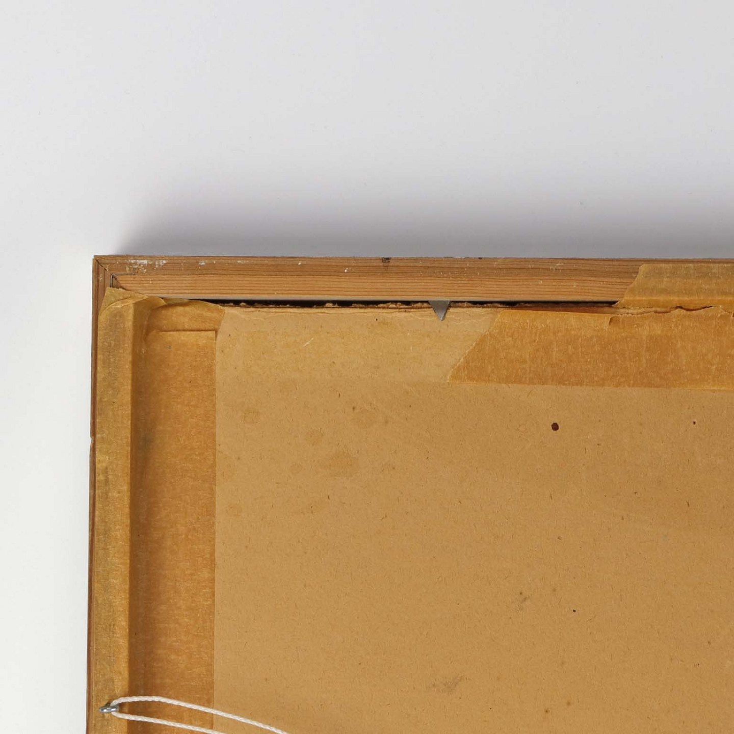 Indrammet tryk i passepartout med sølvmalet træramme og motiv af siddende ældre mand omgivet af børn, engle og en tiger.