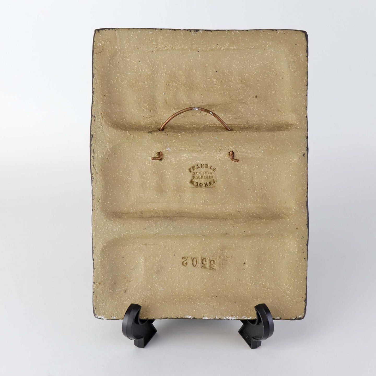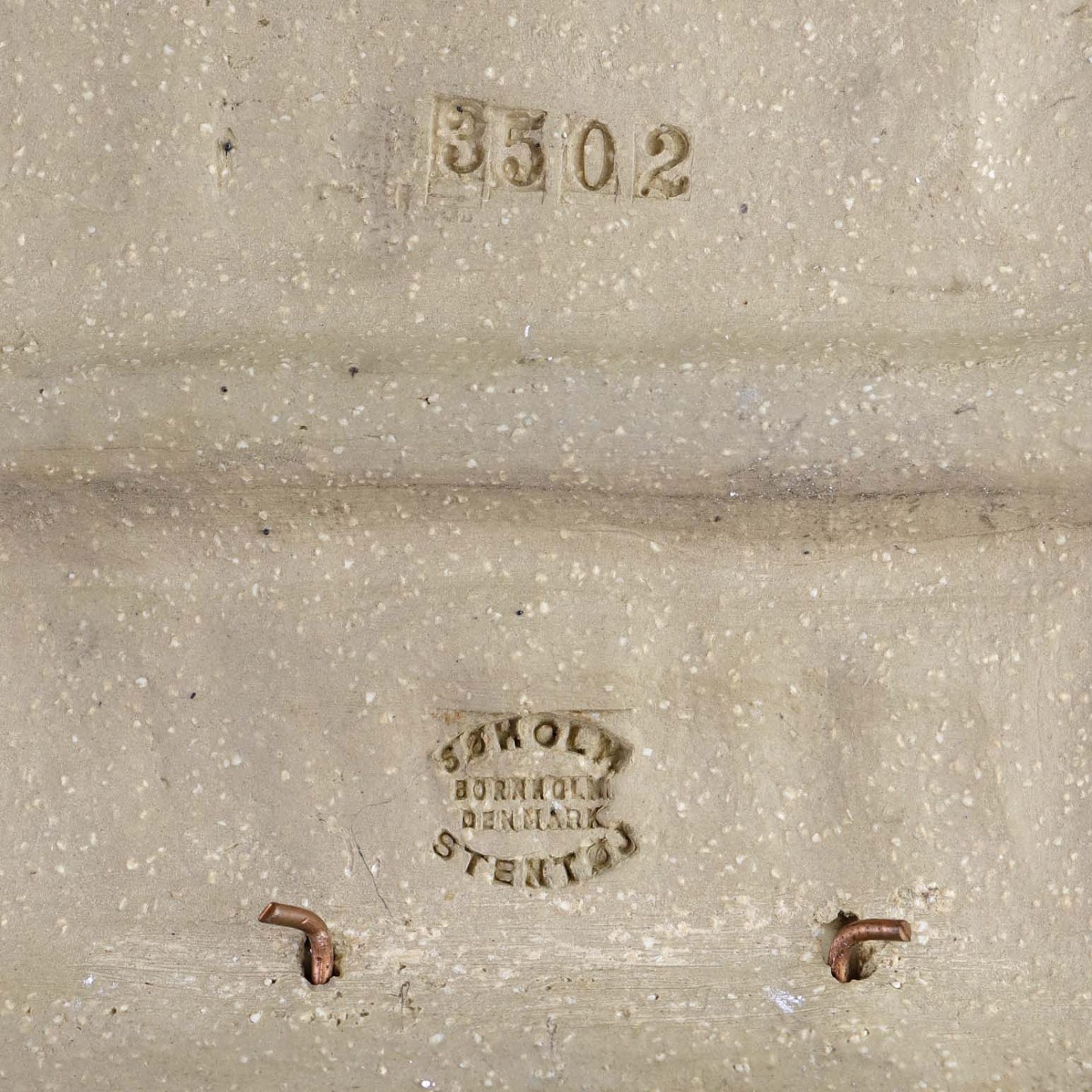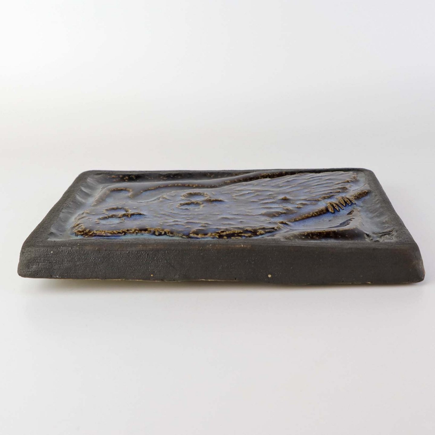 Relief i blå glaseret stentøj med motiv af to ugler på en gren. Nr. 3502