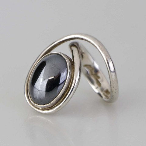 Ring i sterling sølv med poleret oval blodsten - også kendt under navnet hæmatit. Størrelse 52