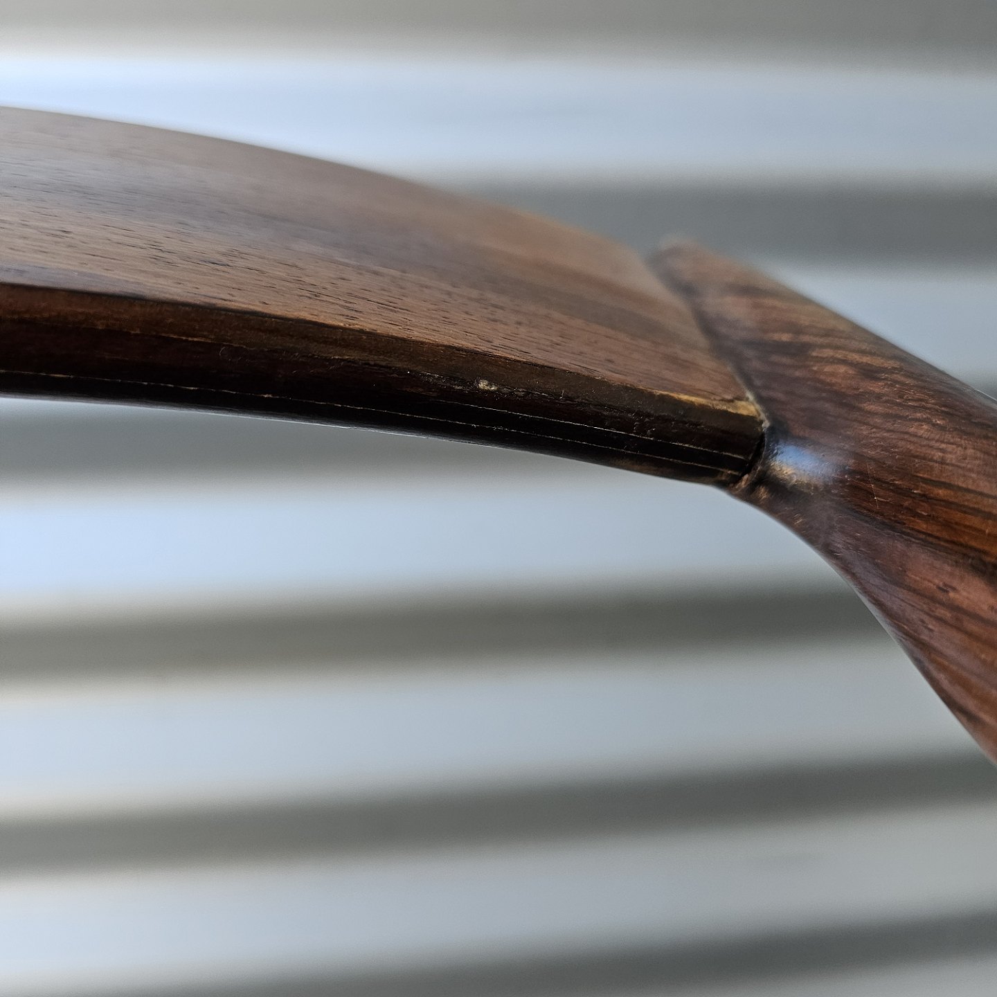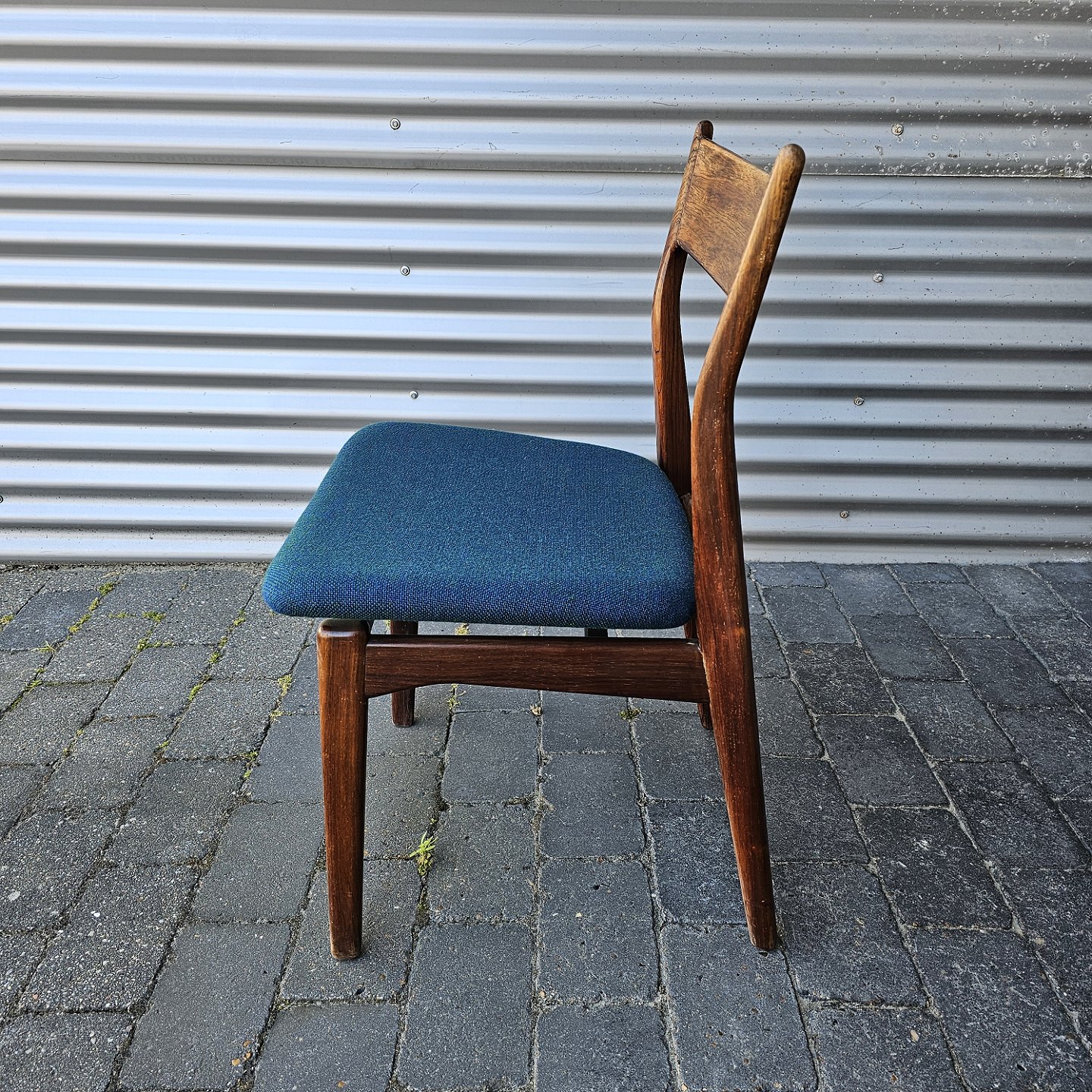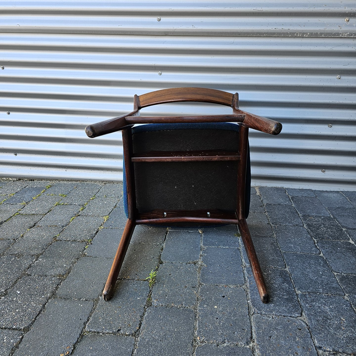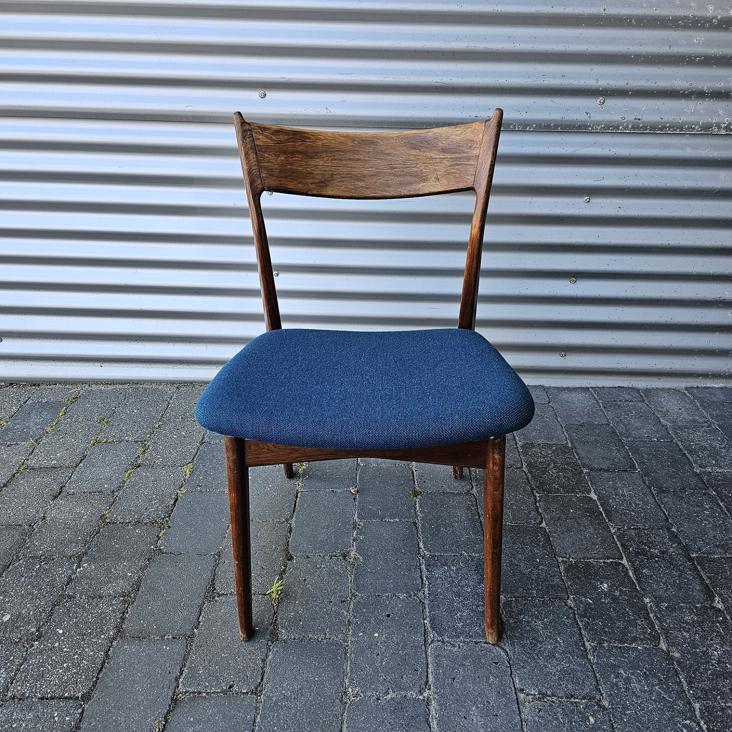 Sæt med fire spisebordsstole i palisander med sæde betrukket med blåt stof